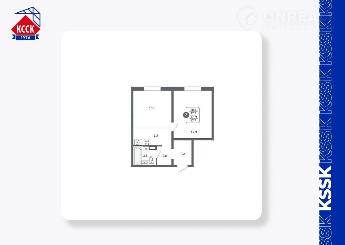 Общая площадь 47.7 м2