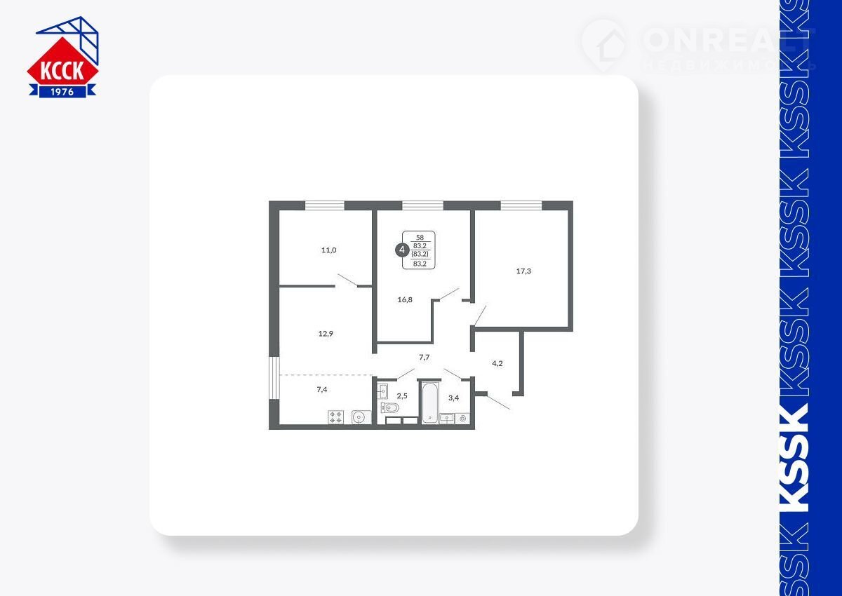 Общая площадь 83.2 м2