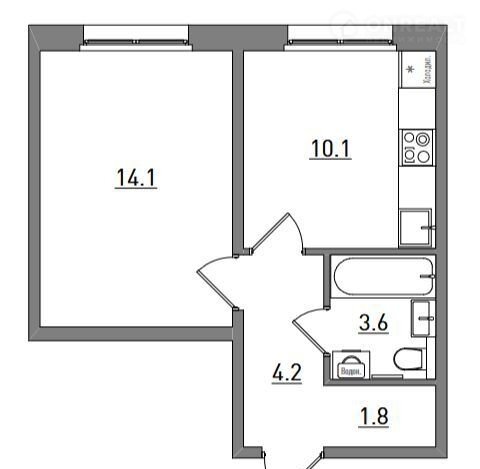 Жилая площадь 14.1 м2