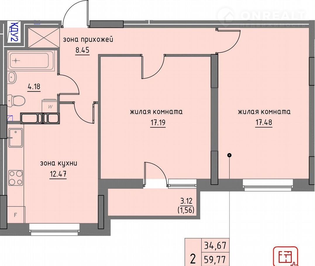 Количество комнат 2