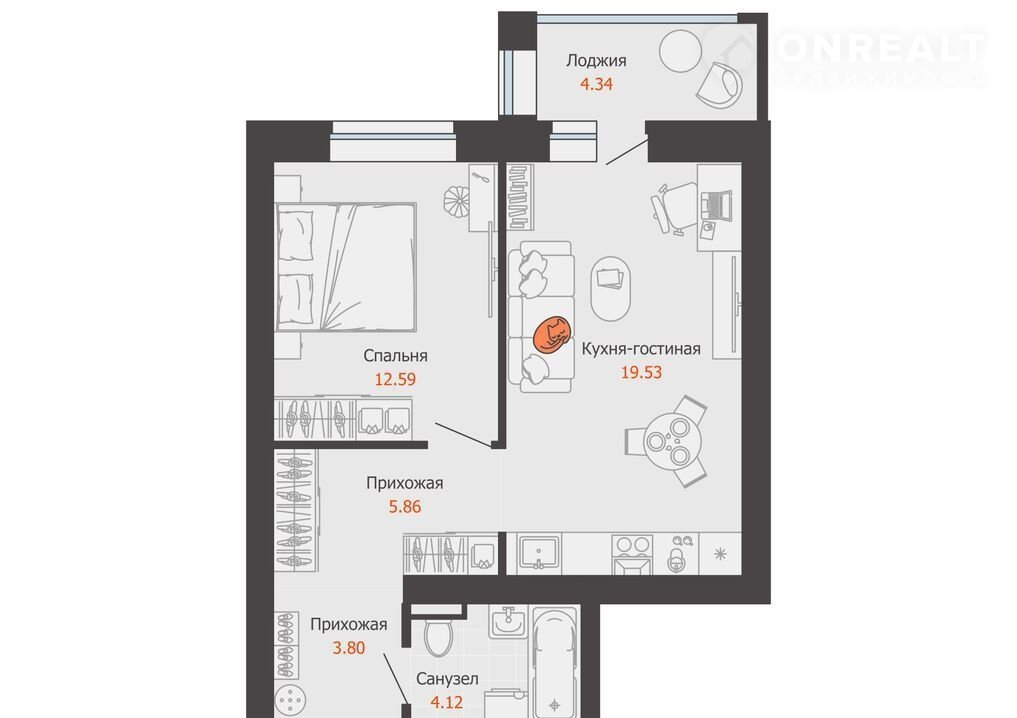 Общая площадь 48 м2