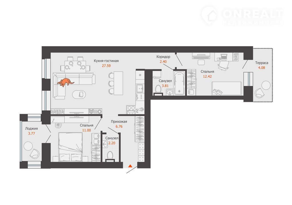 Площадь кухни 27.6 м2