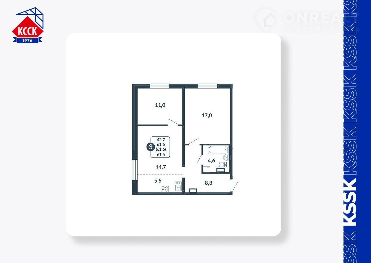 Общая площадь 61.6 м2