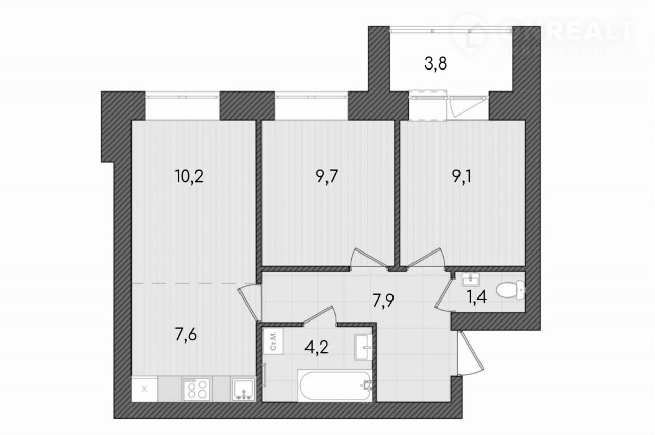 Общая площадь 53.9 м2