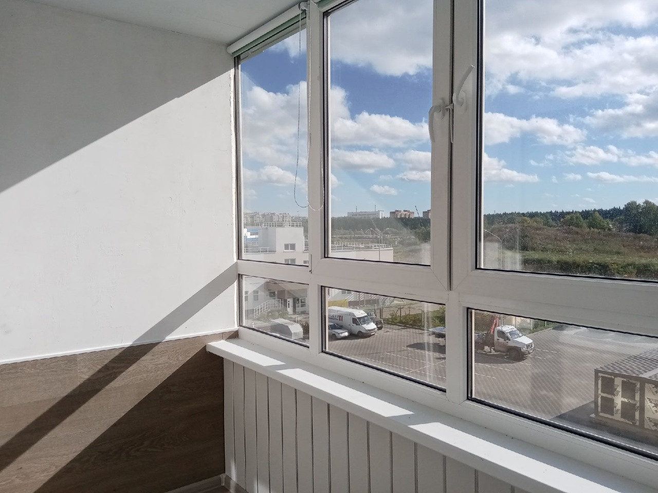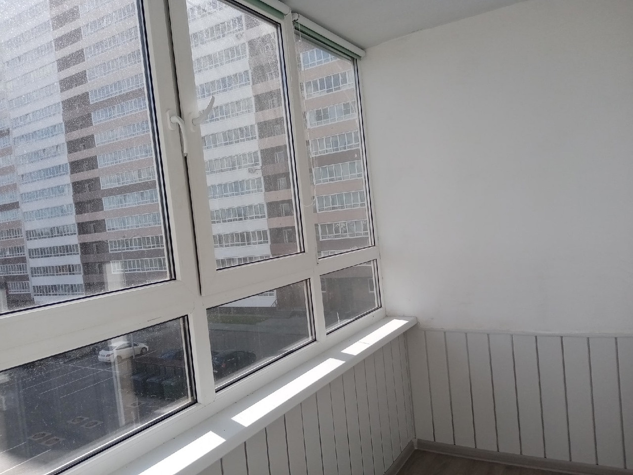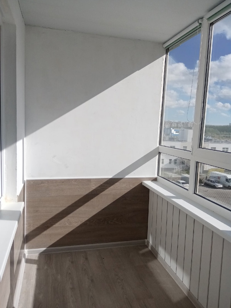 - лоджия застеклена, утеплена, хорошо отделана, проведено электричество, есть светильник, на окнах рулонные шторы;