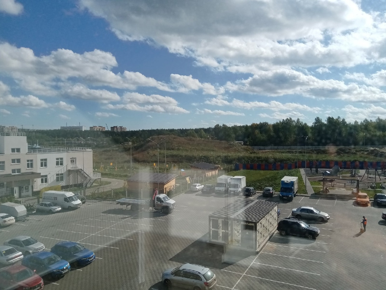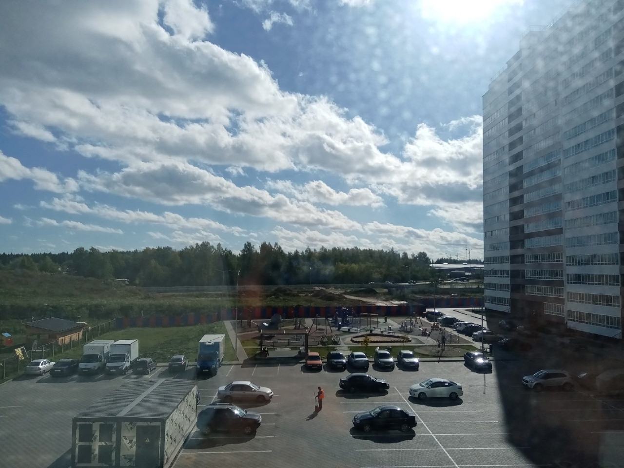 - рядом с домом есть детская площадка и большая современная автопарковка.