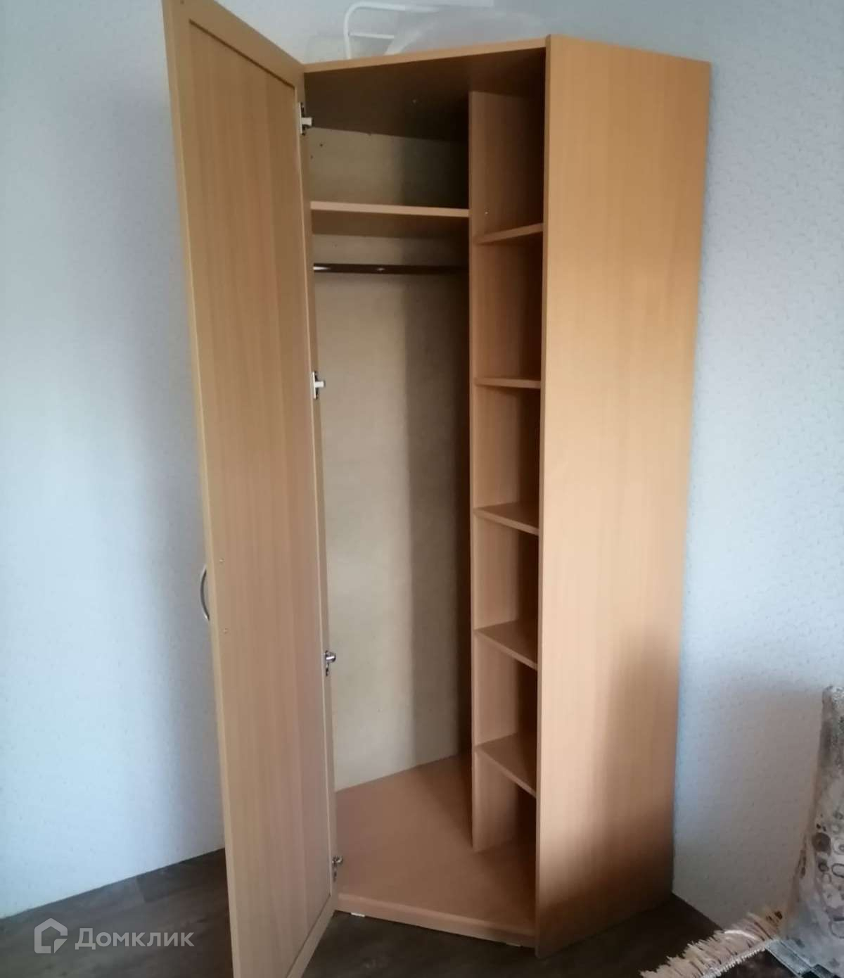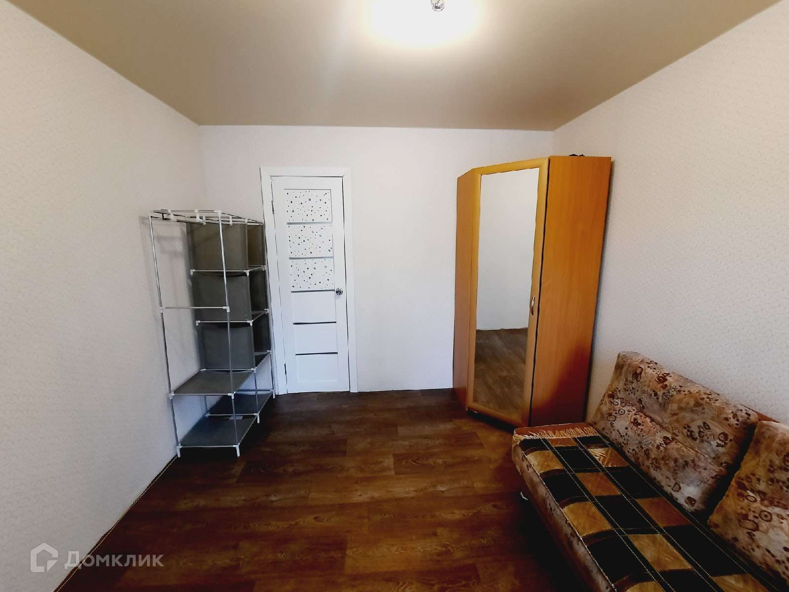 В комнате остается диван, шкаф, этажерка.