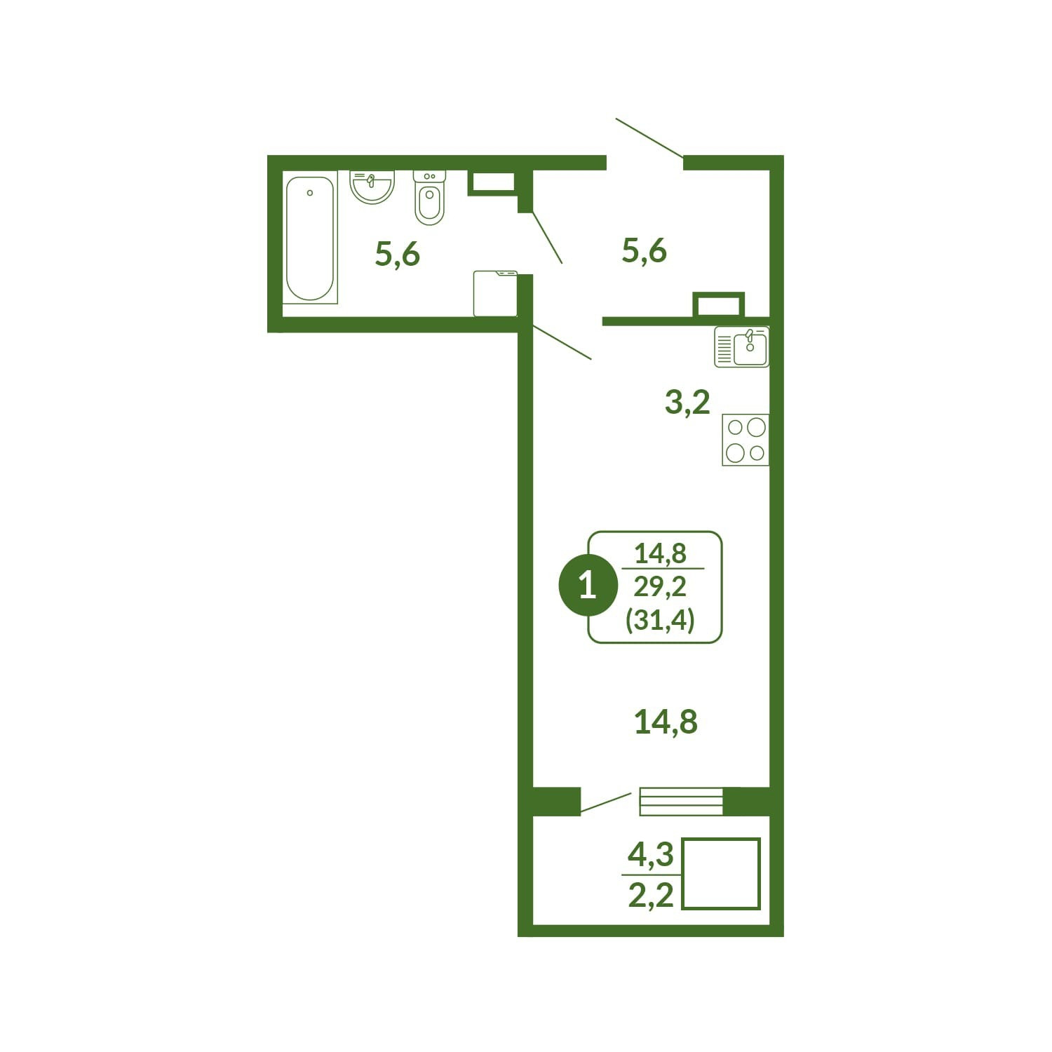 Общая площадь 31.4 м2