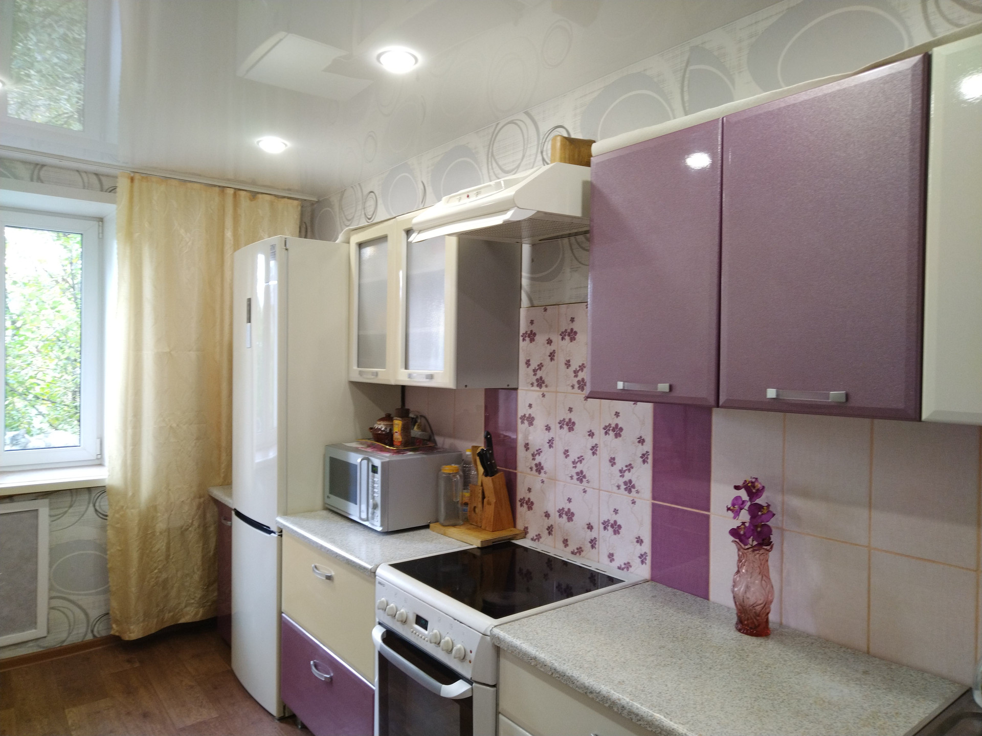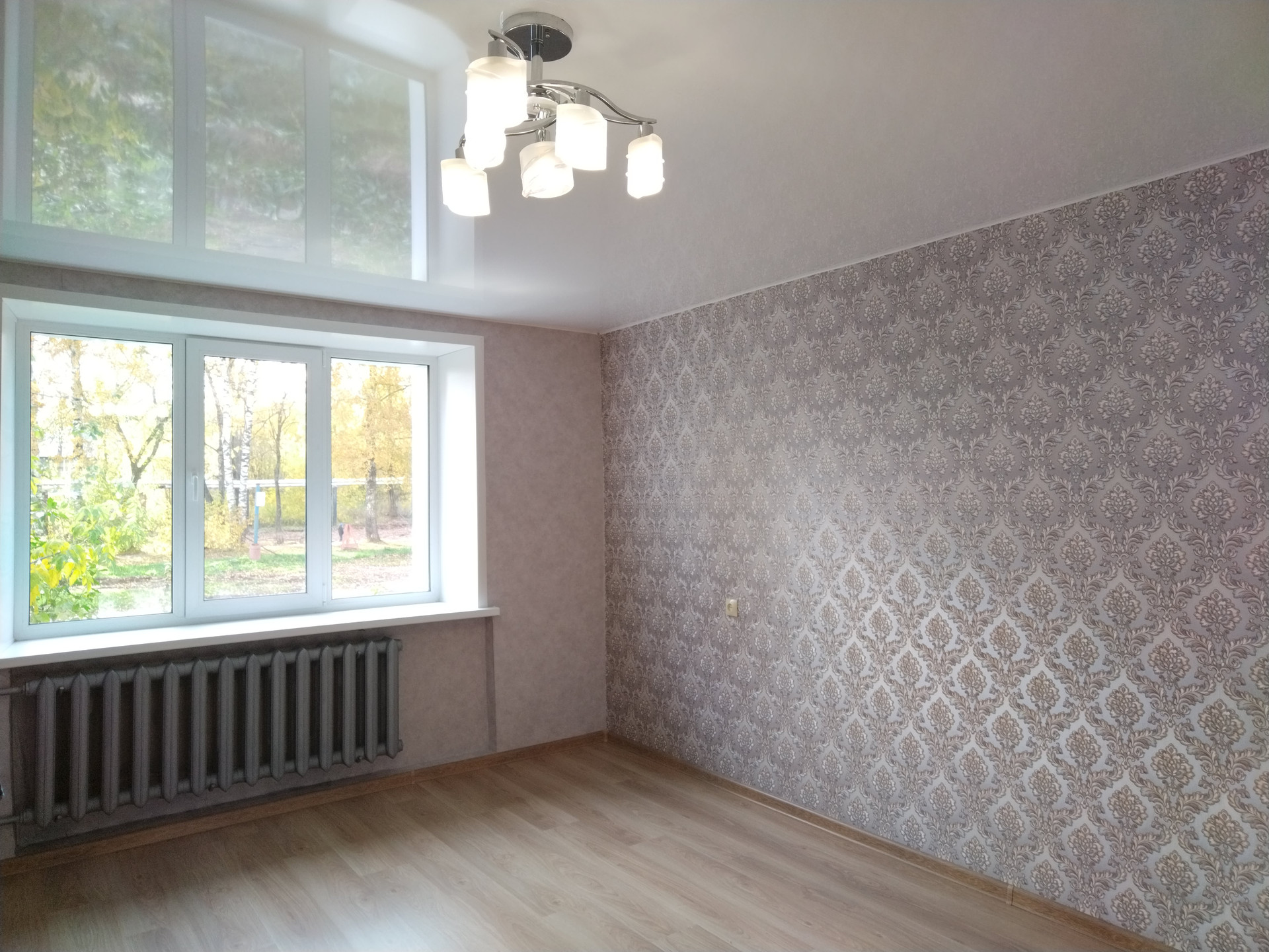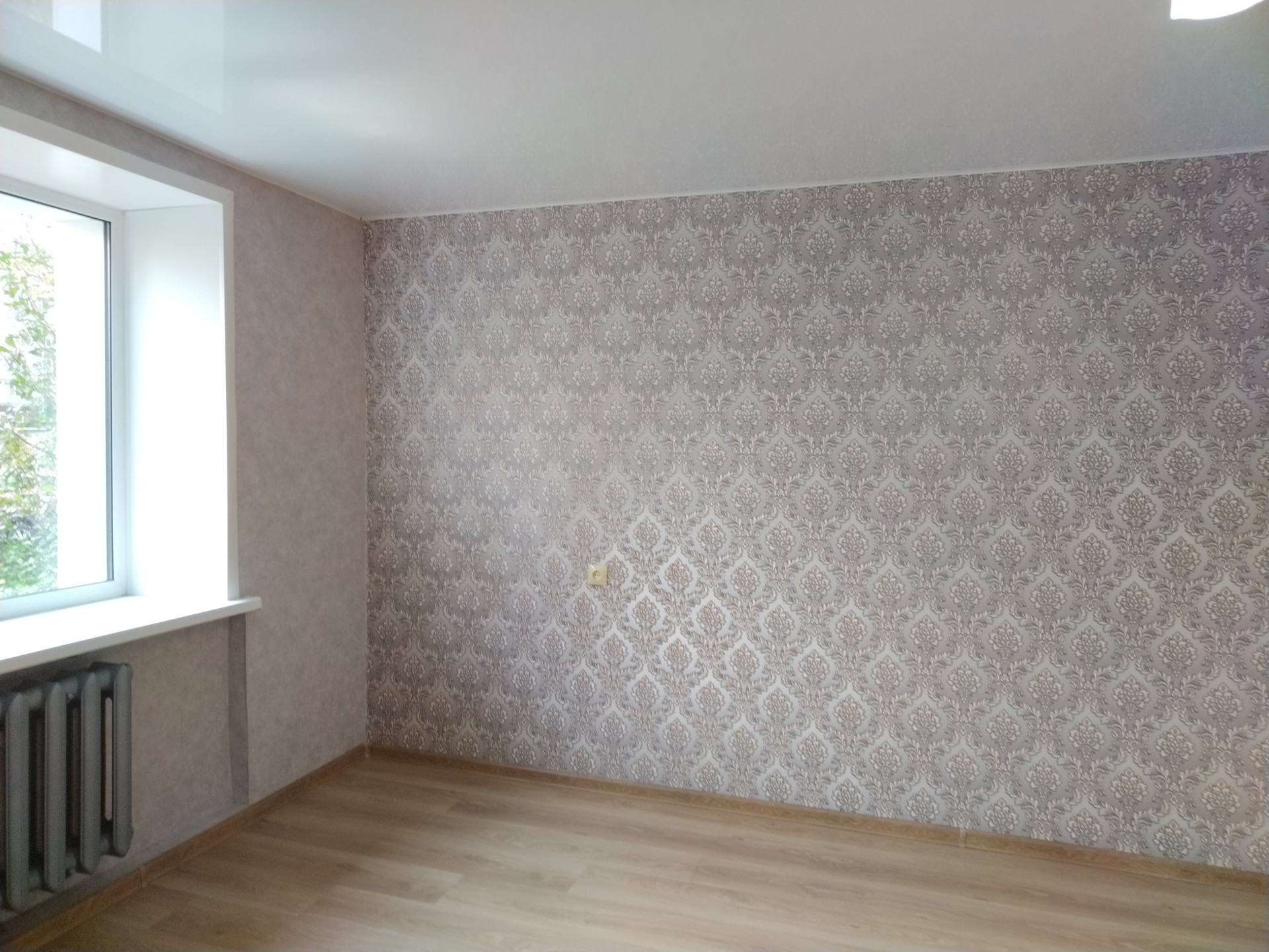 Все комнаты правильной прямоугольной формы, светлые, чистые,  сделан косметический ремонт: окна - пластик; полы - ламинат, линолеум; натяжные потолки; качественные обои; санузел раздельный, ванна в кафеле, туалет - декоративная штукатурка, вся сантехника новая.
