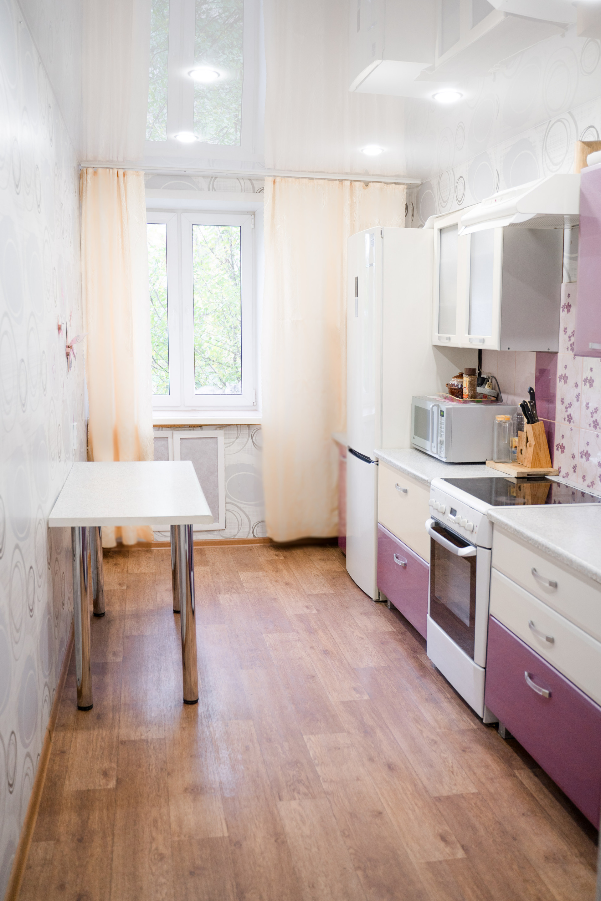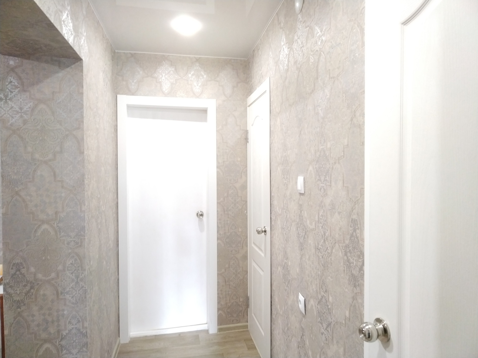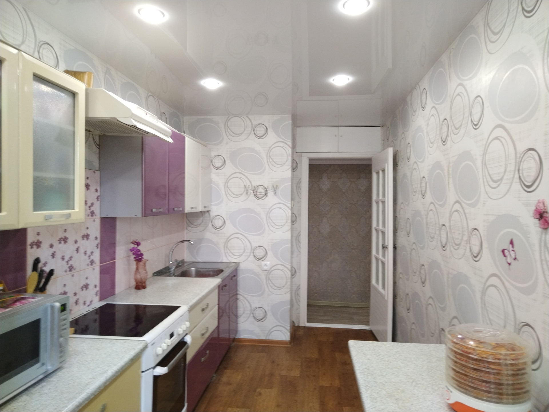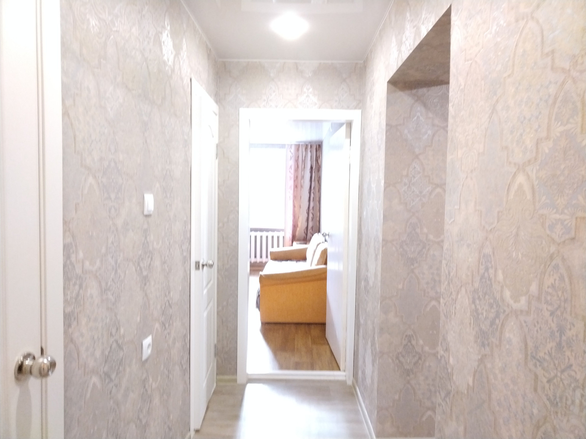 Все комнаты правильной прямоугольной формы, светлые, чистые,  сделан косметический ремонт: окна - пластик; полы - ламинат, линолеум; натяжные потолки; качественные обои; санузел раздельный, ванна в кафеле, туалет - декоративная штукатурка, вся сантехника новая.