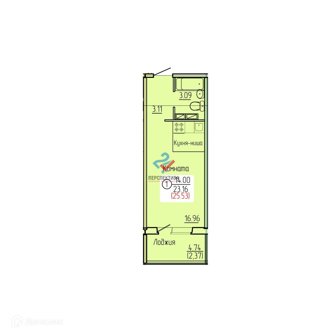 Общая площадь 25.5 м2