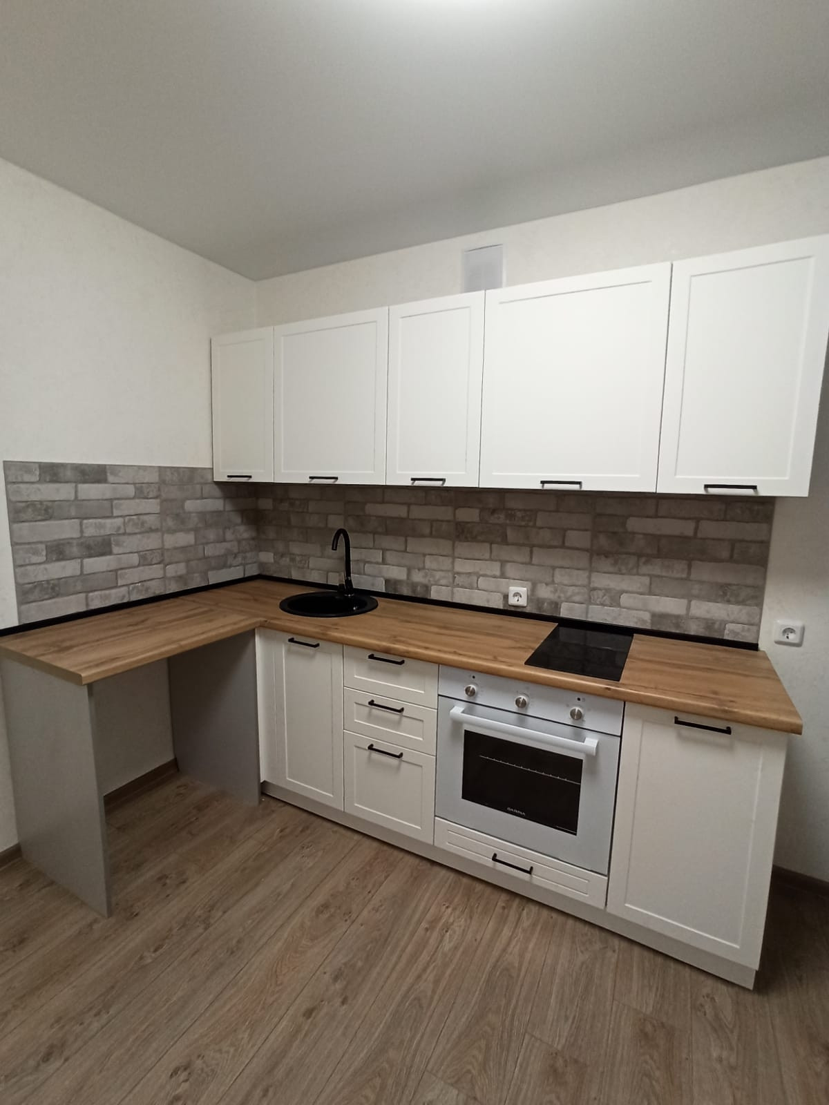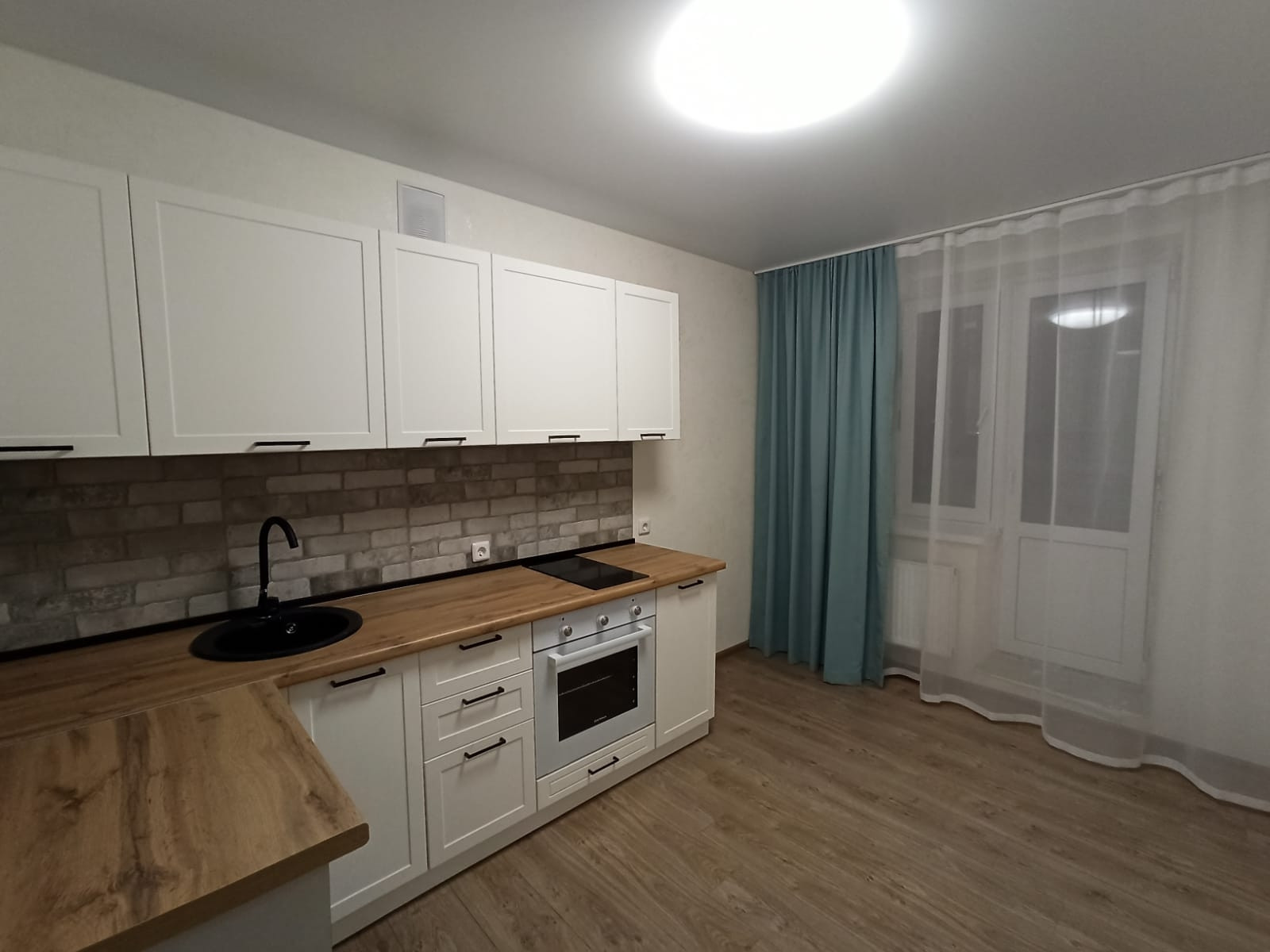 Из мебели оставим новый кухонный гарнитур с духовым шкафом и варочной поверхностью.