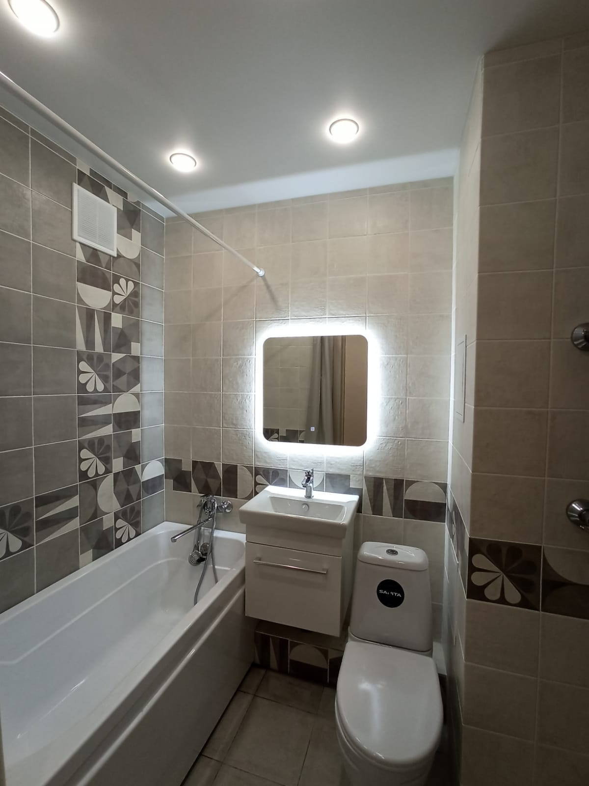 Совмещенный санузел - 3,2 кв.м., в современном кафеле Kerama marazzi, установлена качественная сантехника.