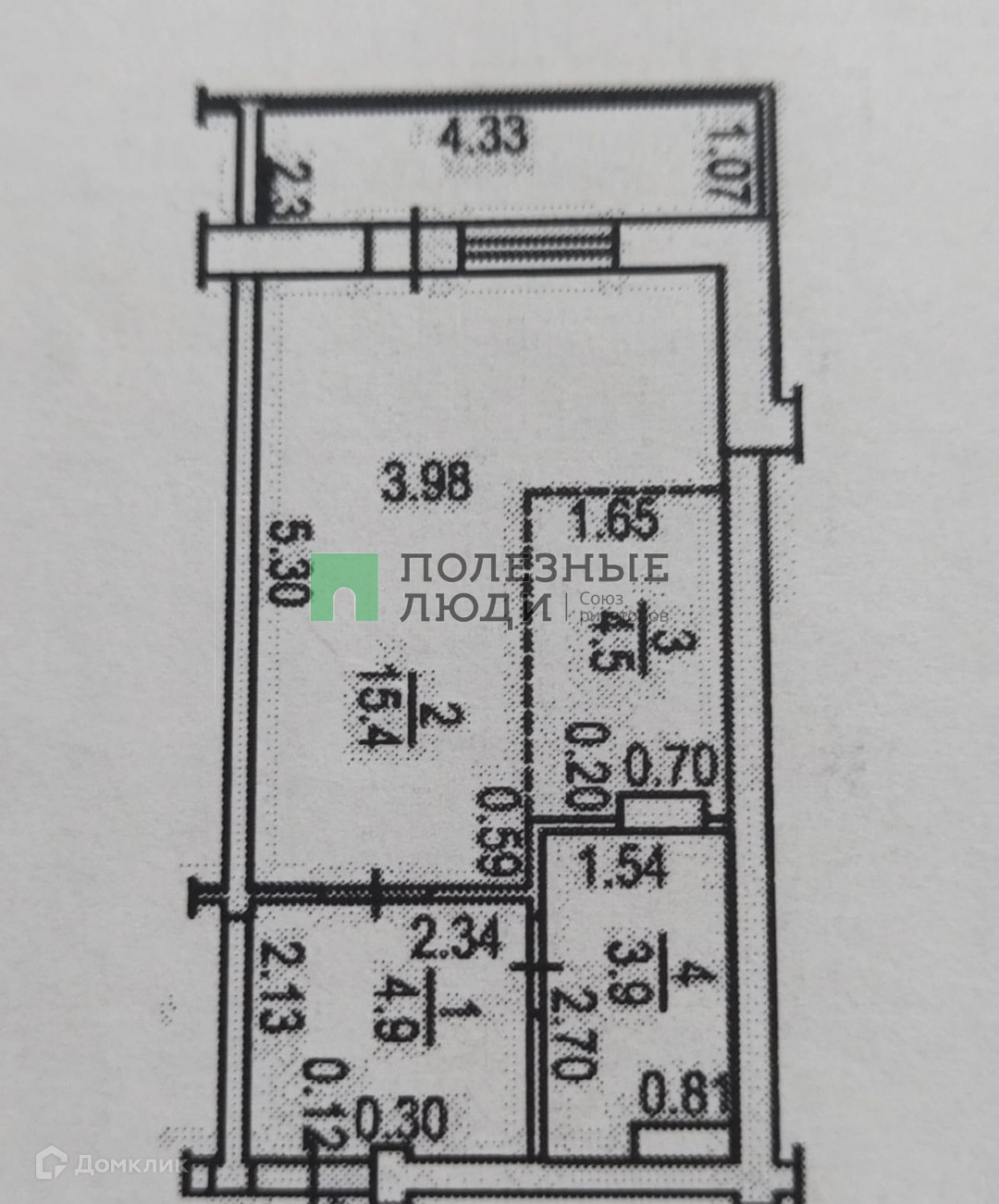 Общая площадь 28.7 м2