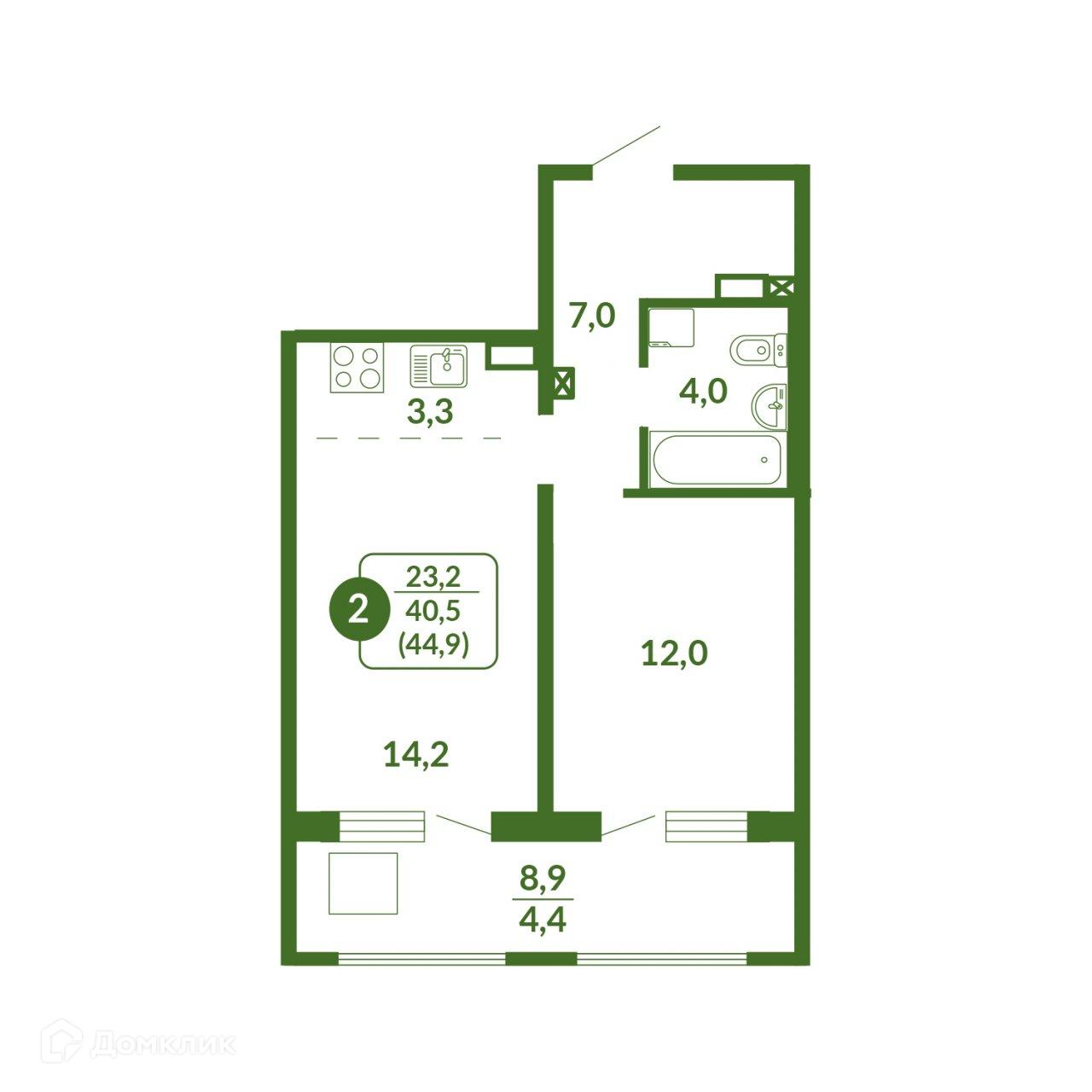 Общая площадь 44.9 м2