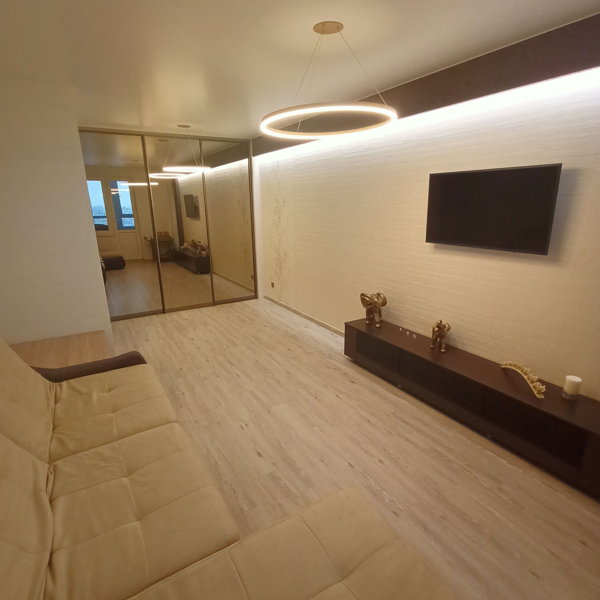 -в комнате просторная встроенная гардеробная с зеркальными дверями 5 кв.м.