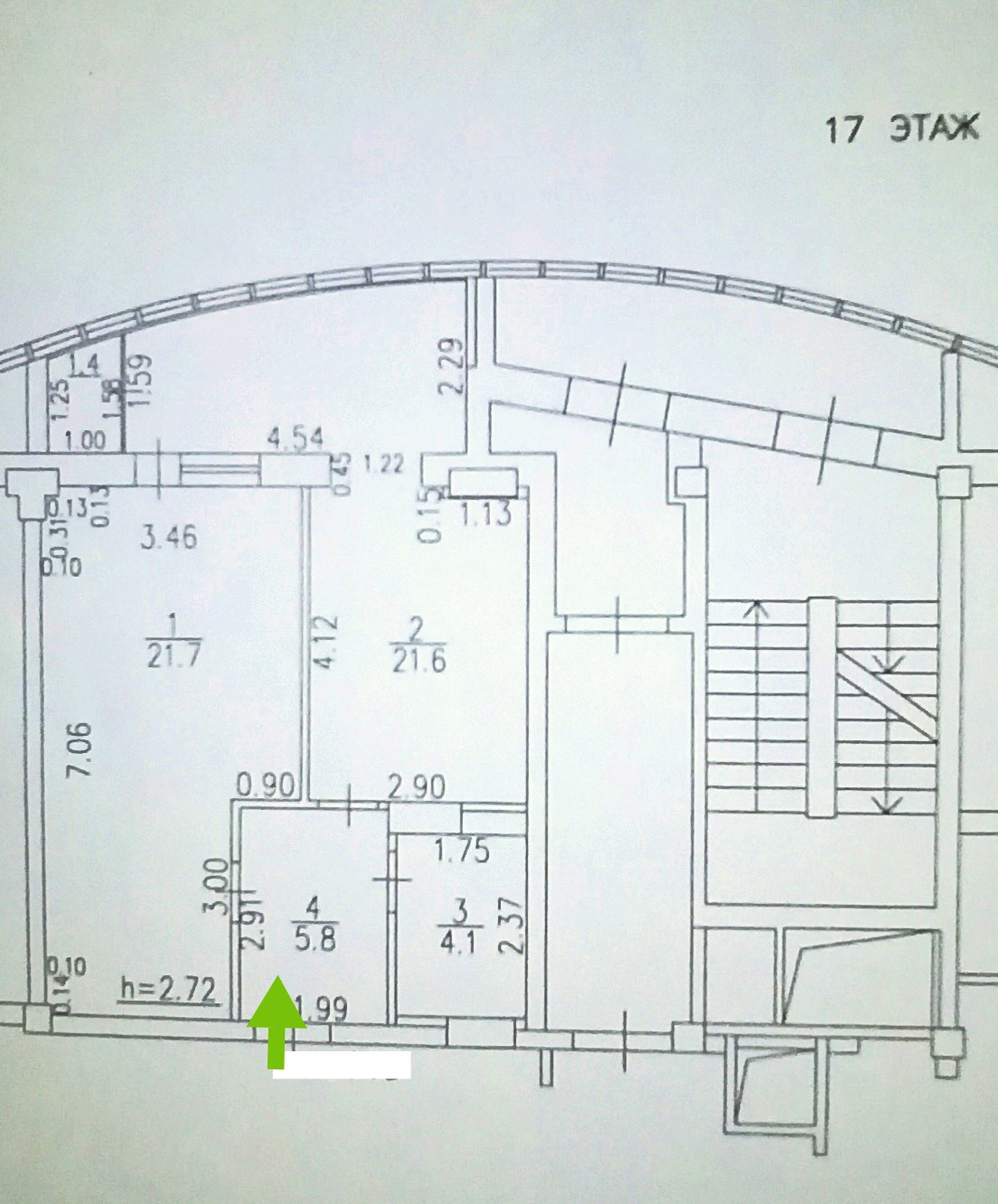 -Высокие потолки 2,7 м.