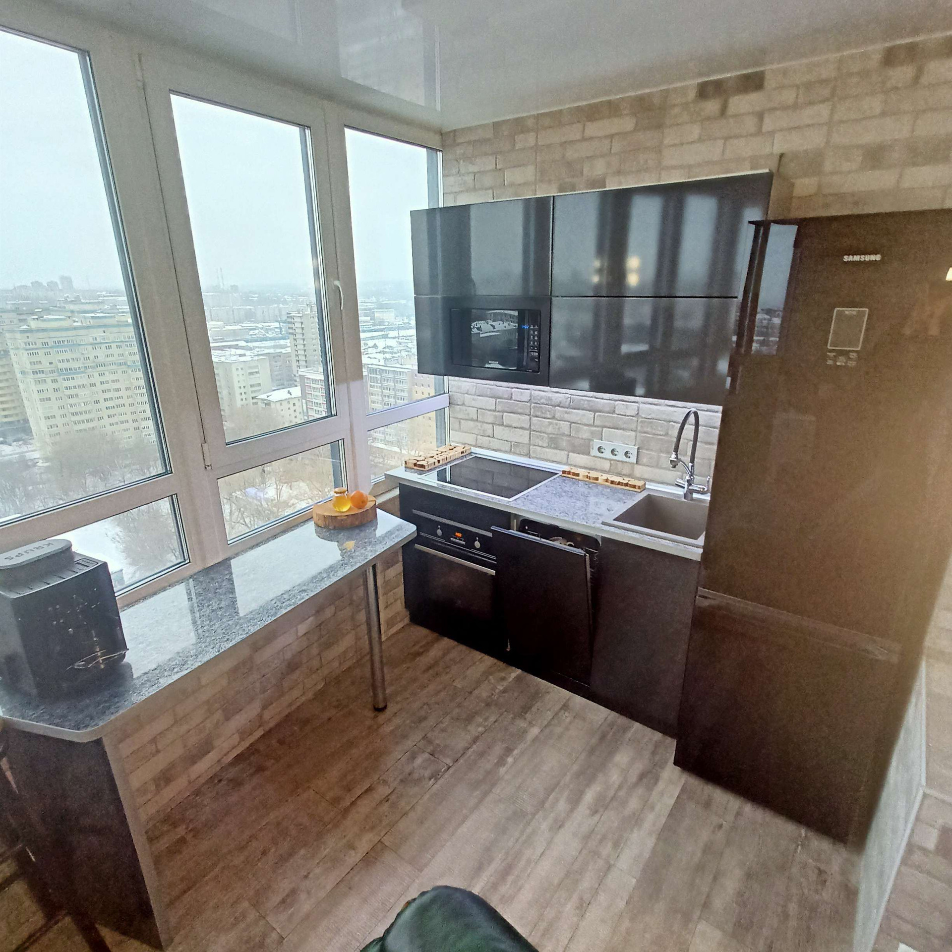 ● Многофункциональный кухонный гарнитур , с премиальной встроенной техникой:( духовой шкаф,варочная поверхность посудомоечная машина ELECTROLUX,холодильник,микроволновая печь Samsung);