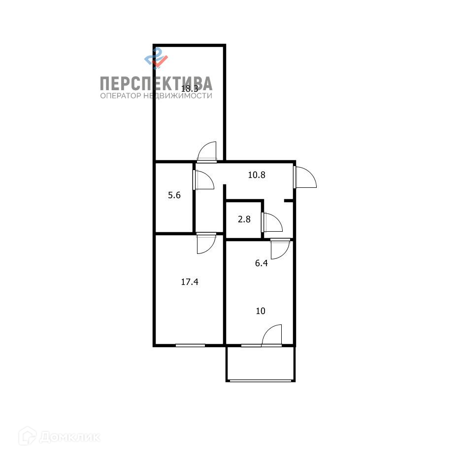 Удобное расположение комнат, площадь комнат 17 м2, 18 м2 и 16 м2.
