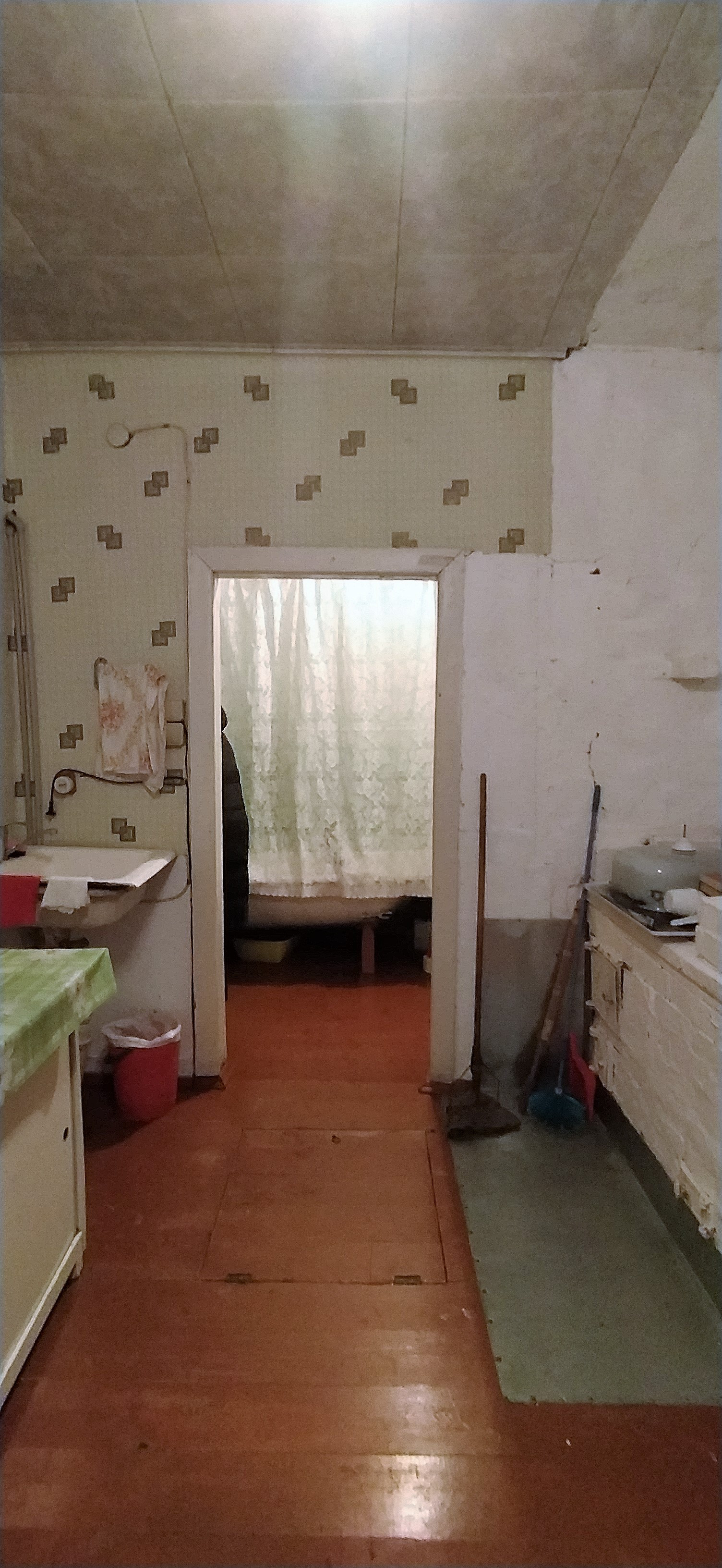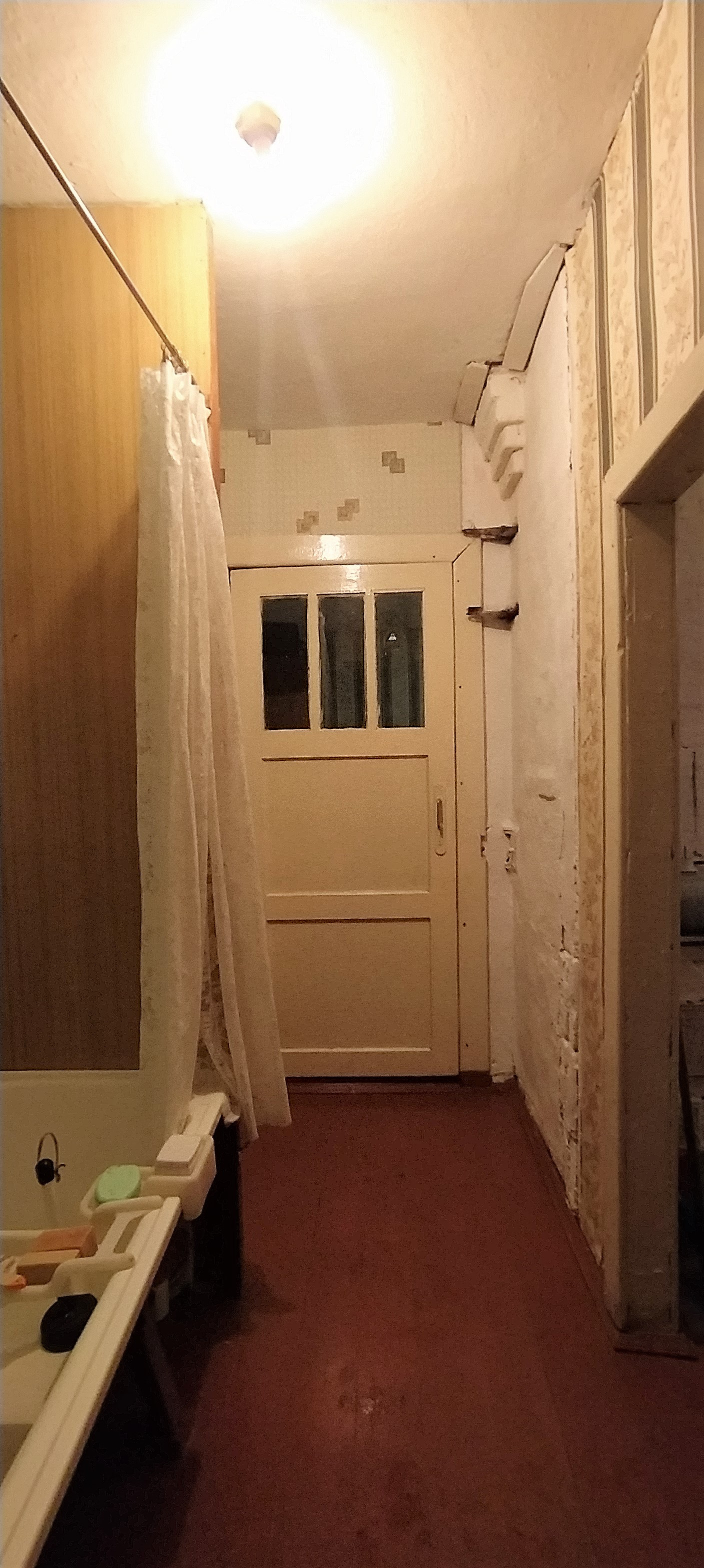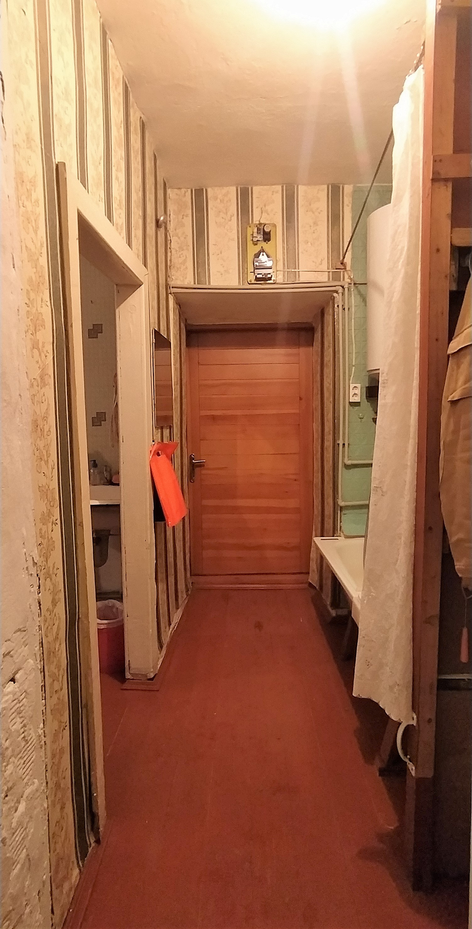 Коридор вместительный. В коридоре расположена ванна с водонагревателем.