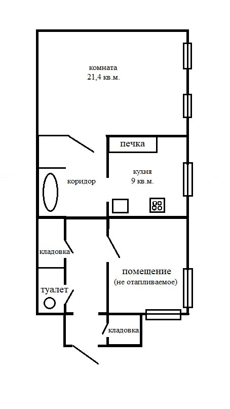 Кухня – 9 кв.м., Подполье, печка.