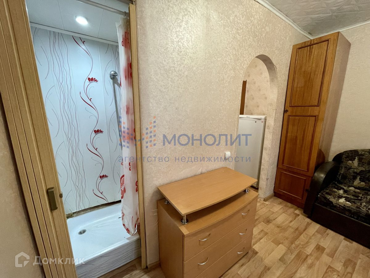В комнате предусмотрен отдельный туалет, душ. В коридоре размещен холодильник, кухонный гарнитур и раковина с зеркалом для умывания. Комната полностью укомплектована мебелью. Все остается.