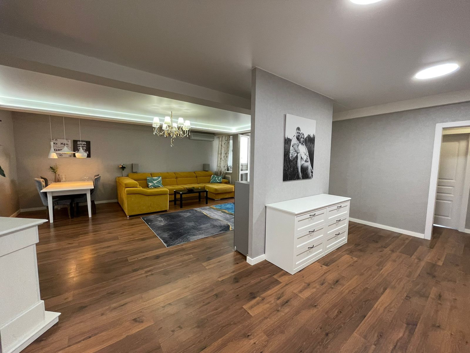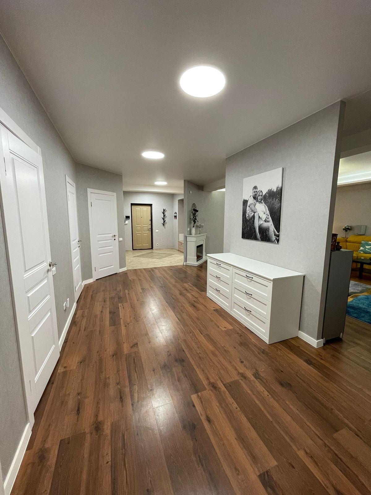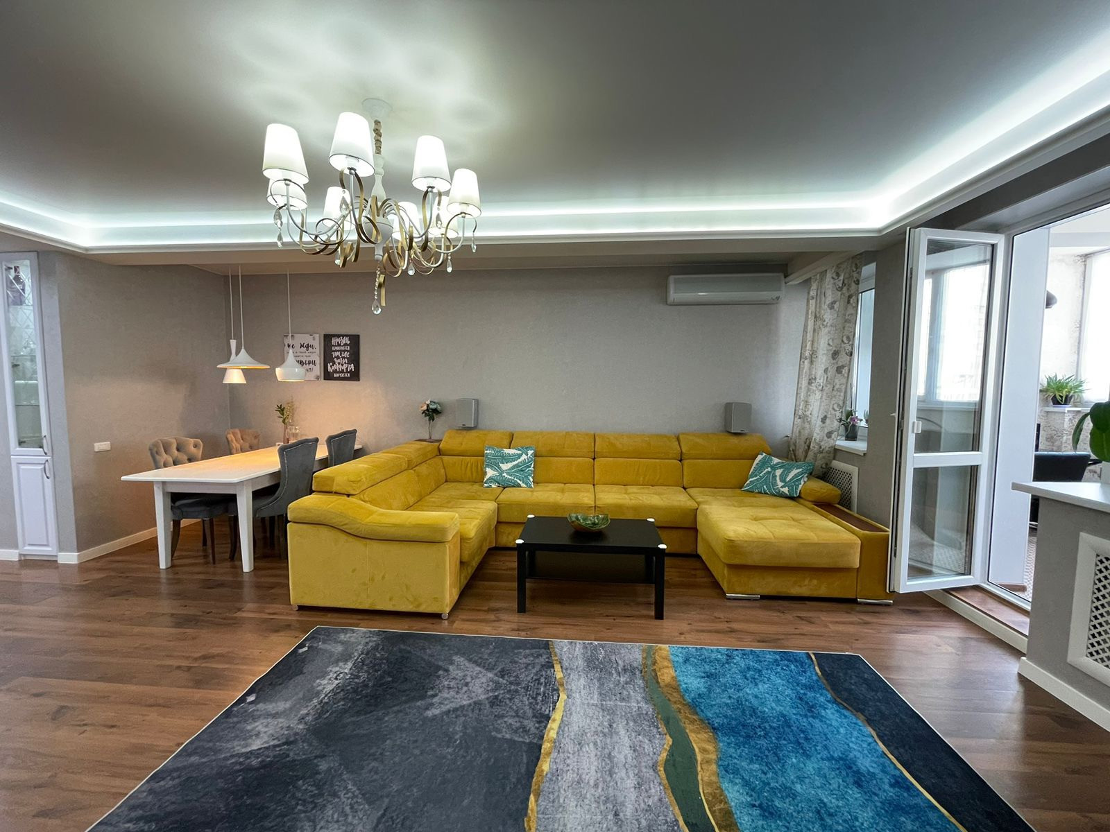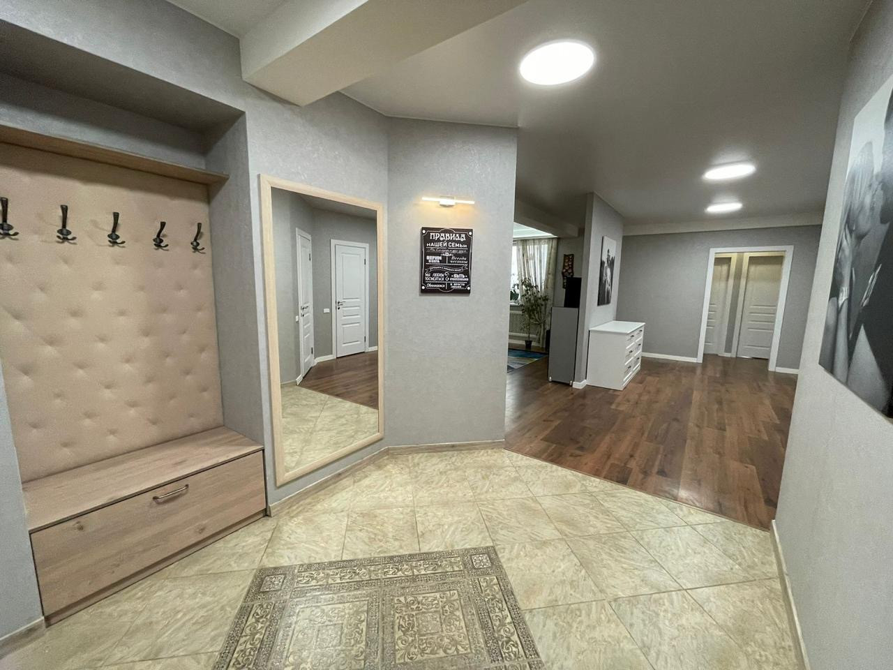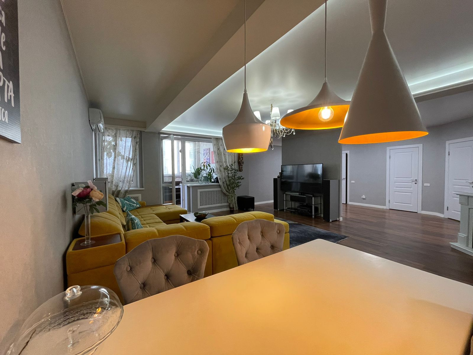 В квартире сделан дизайнерский ремонт, натяжные потолки, ламинат, электрокамин, кондиционер.
