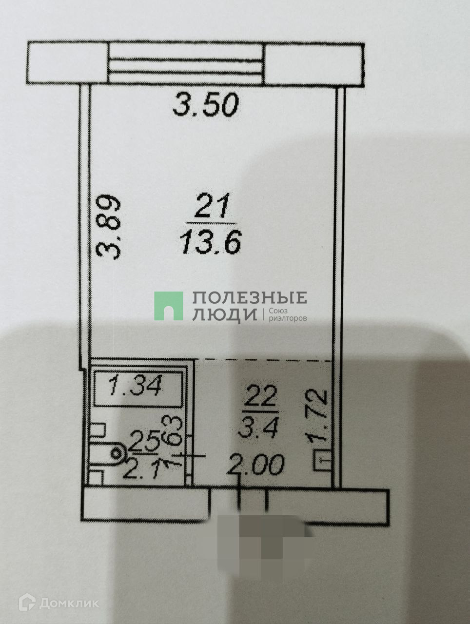 Жилая площадь 13.6 м2
