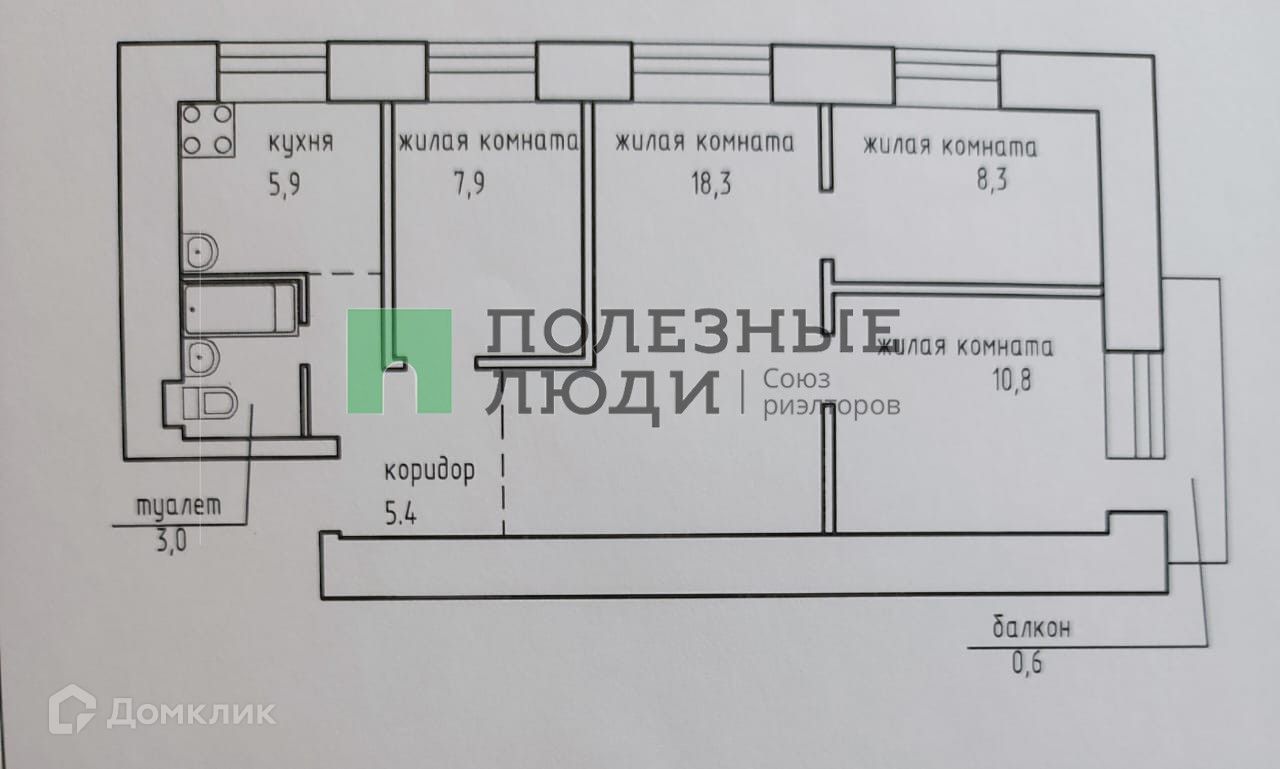 Общая площадь 60.4 м2