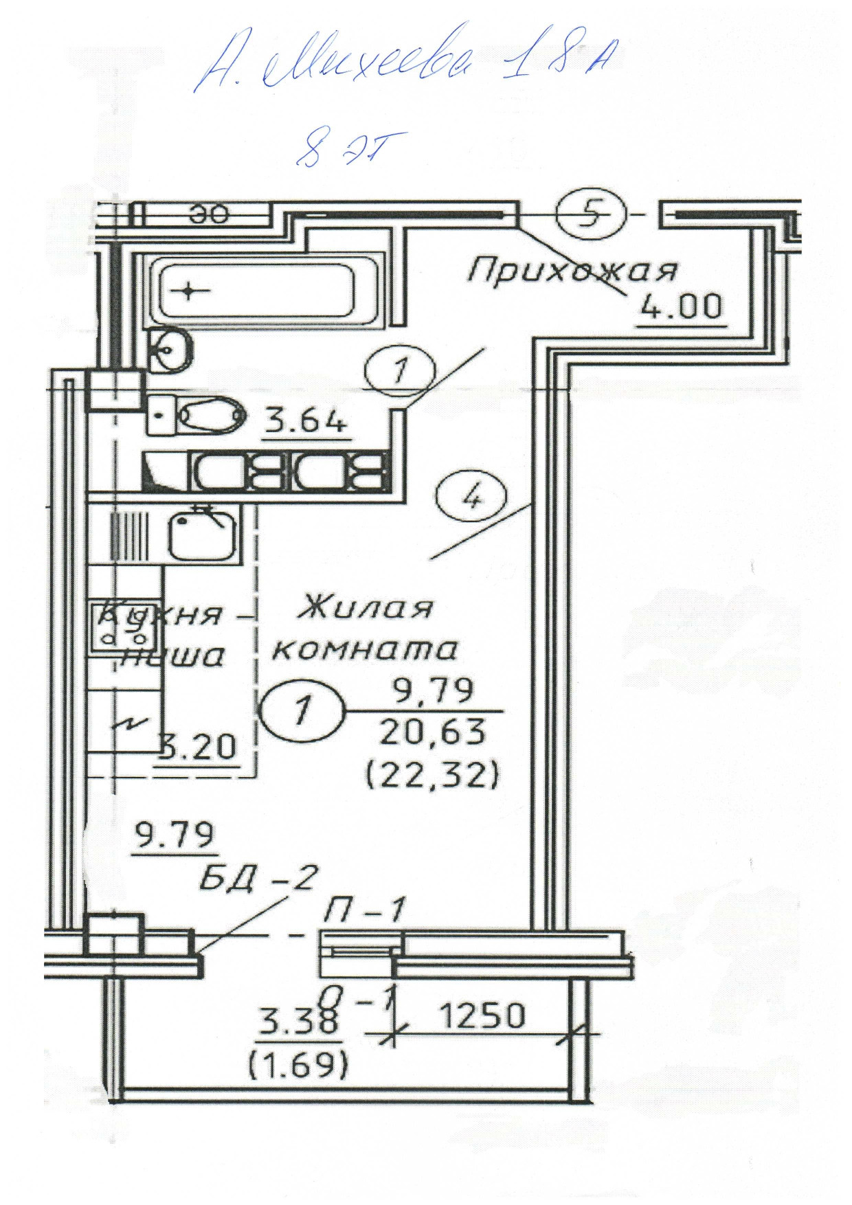 Балкон, лоджия 1 балкон
