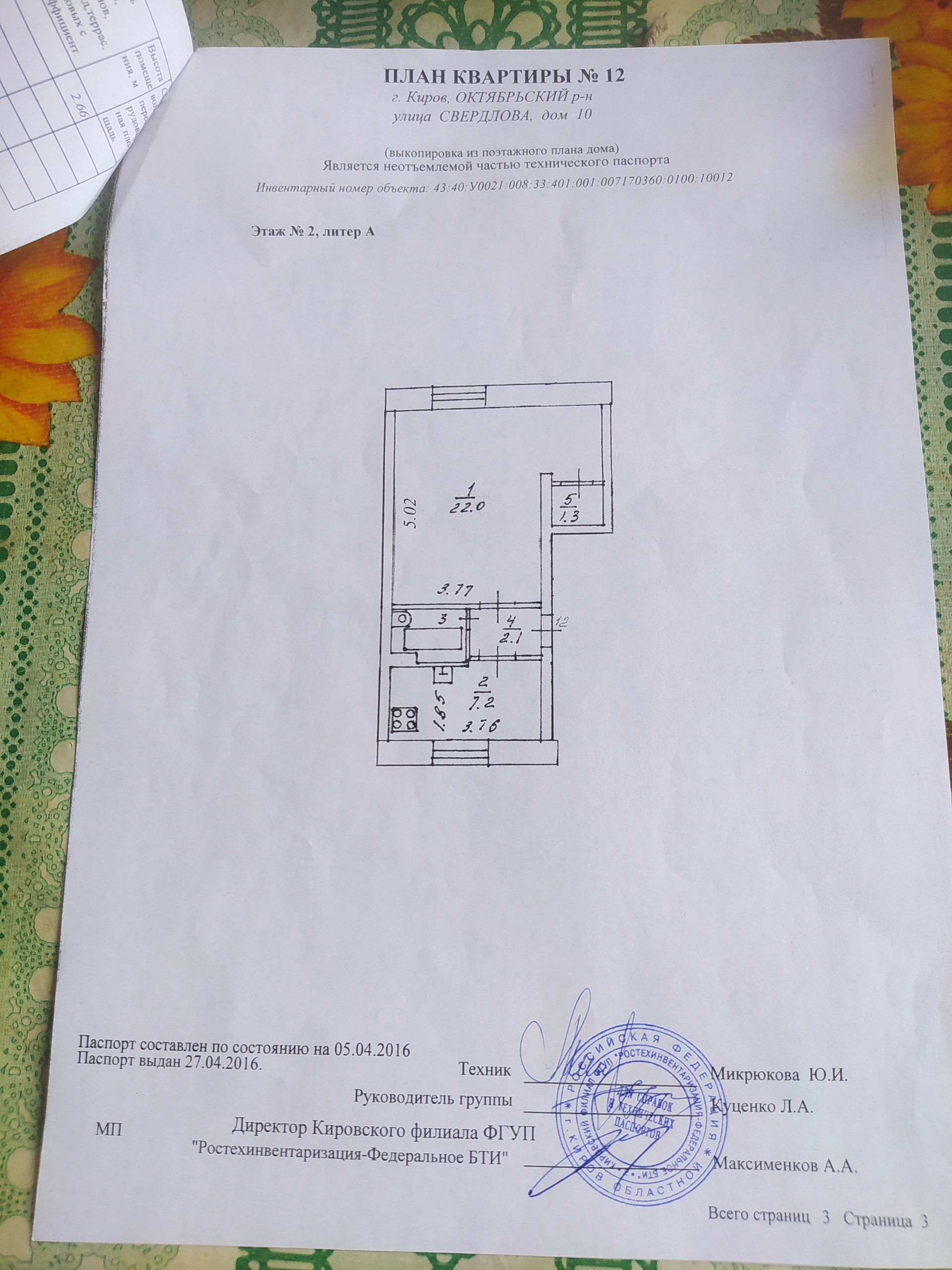1-комнатная квартира, 35.1 м2, этаж 2 / 2, на продажу в Кирове, улица Свердлова, 10