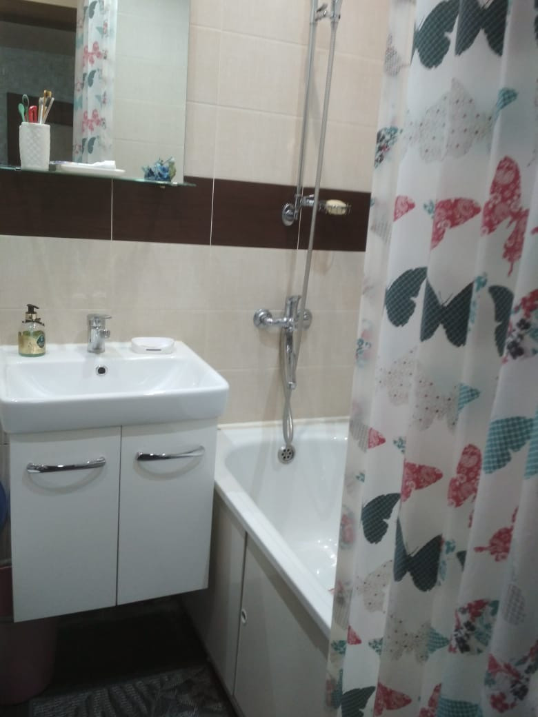 Квартира не угловая, в хорошем состоянии. Санузел в кафеле, на полу ламинат, натяжной потолок, металлическая входная дверь, остекленная лоджия