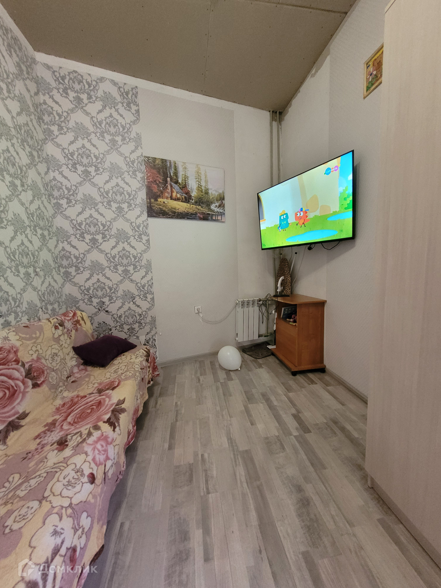 В квартире сделан косметический ремонт, стены оклеены обоями, на полу ламинат.