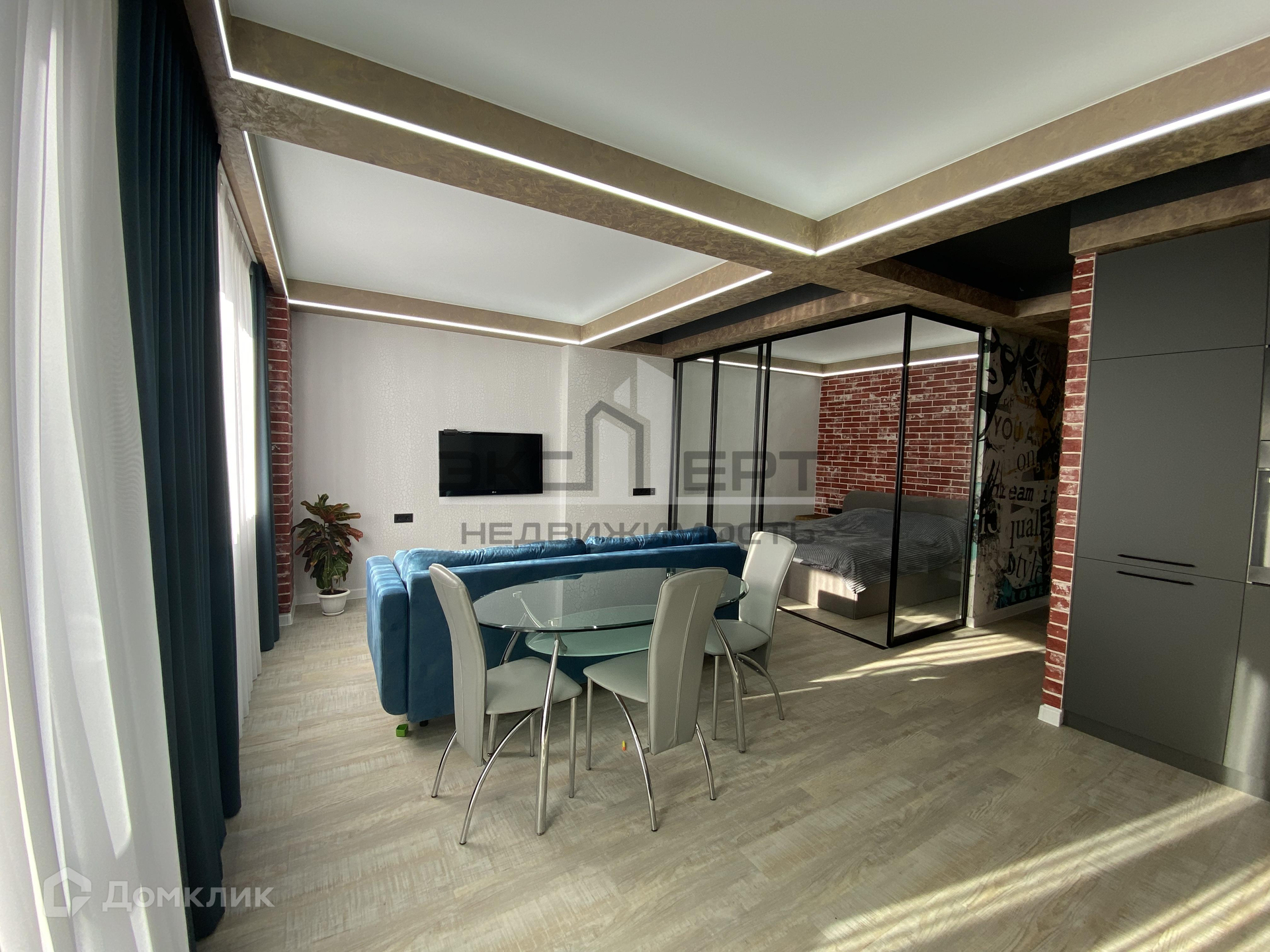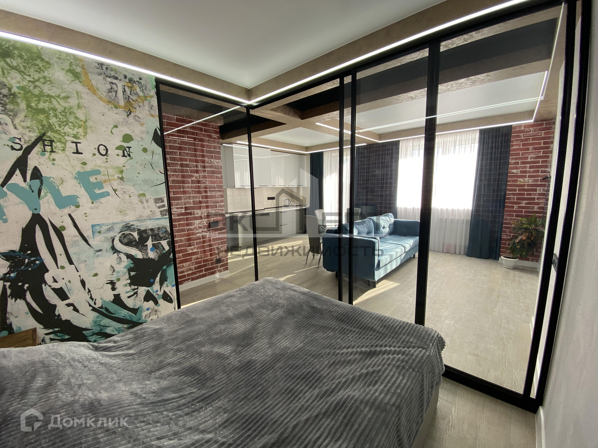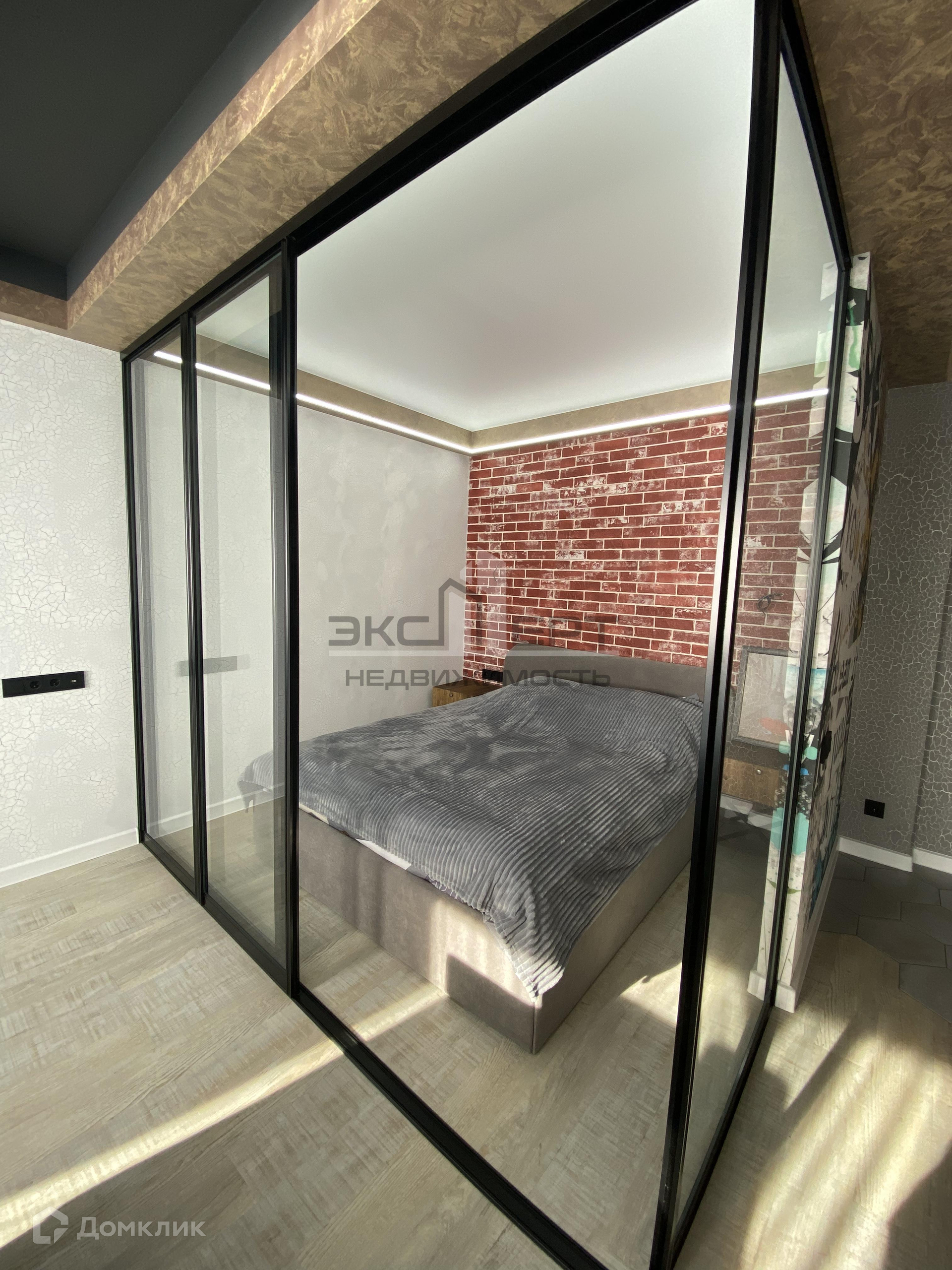 ✅ современная планировка квартиры. Зона кровати огорожена стеклянными дверями, можно установить дополнительно жалюзи или шторы.