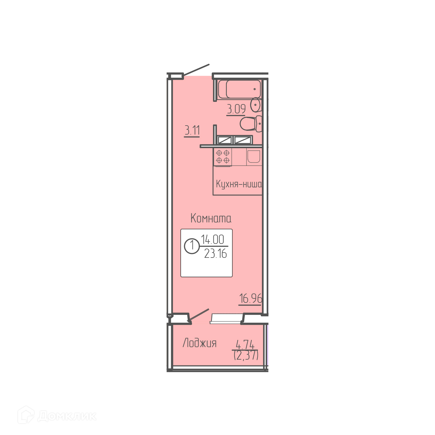Общая площадь 23.1 м2