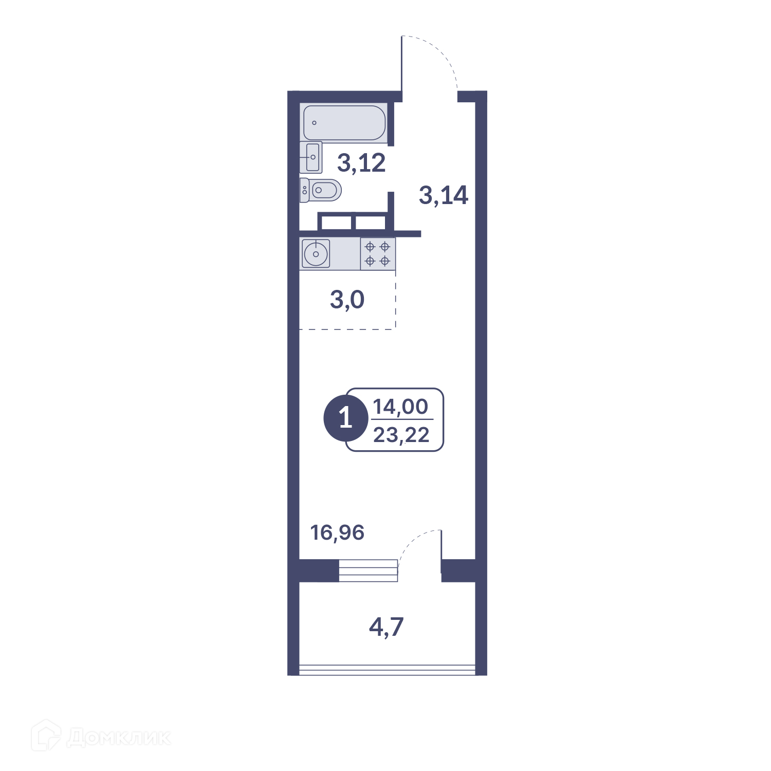 Общая площадь 23.22 м2