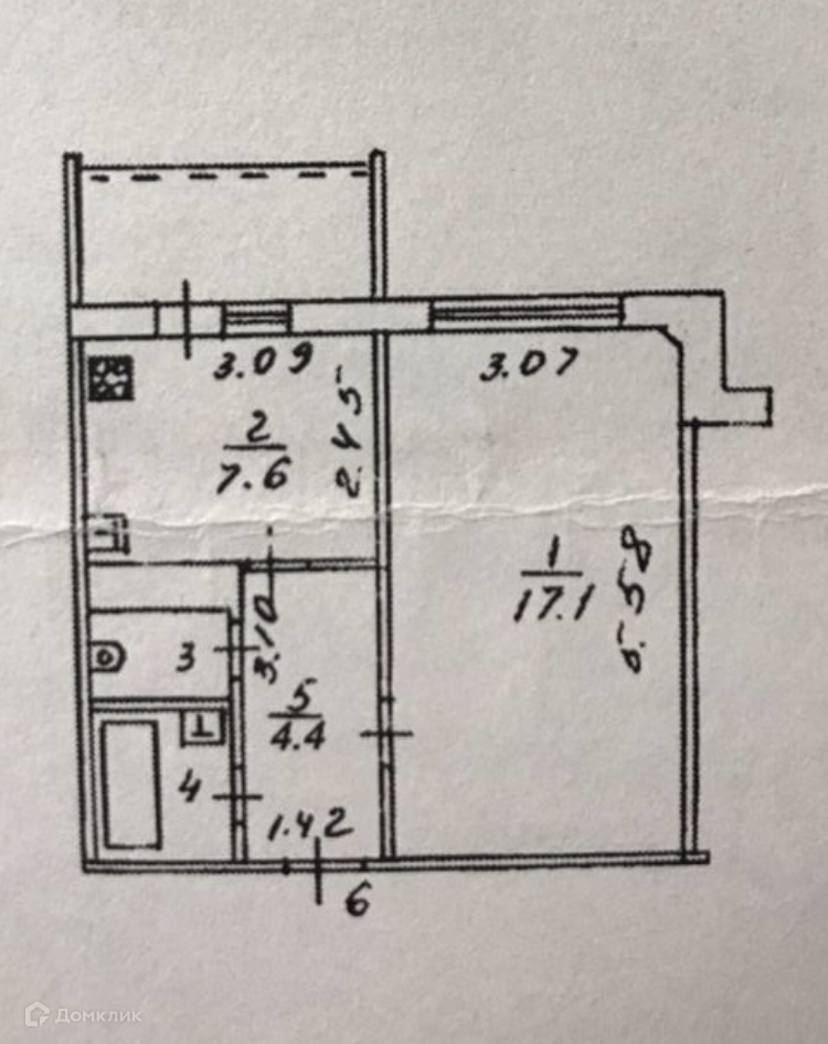 Балкон, лоджия 1 балкон