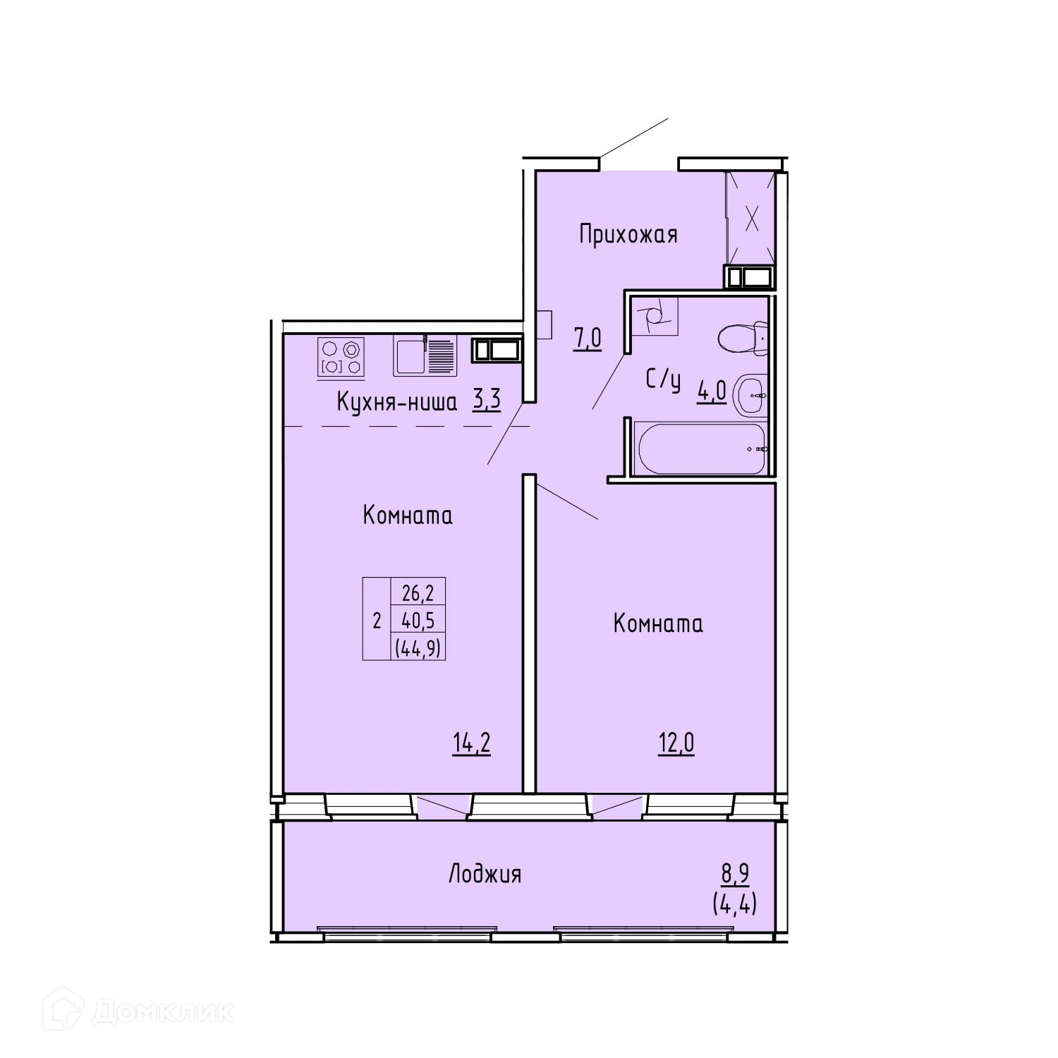 Общая площадь 44.9 м2
