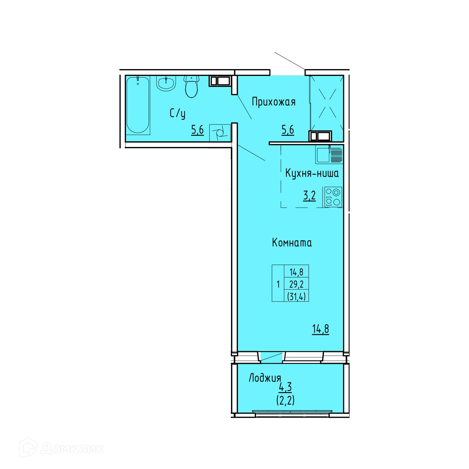 Общая площадь 31.4 м2