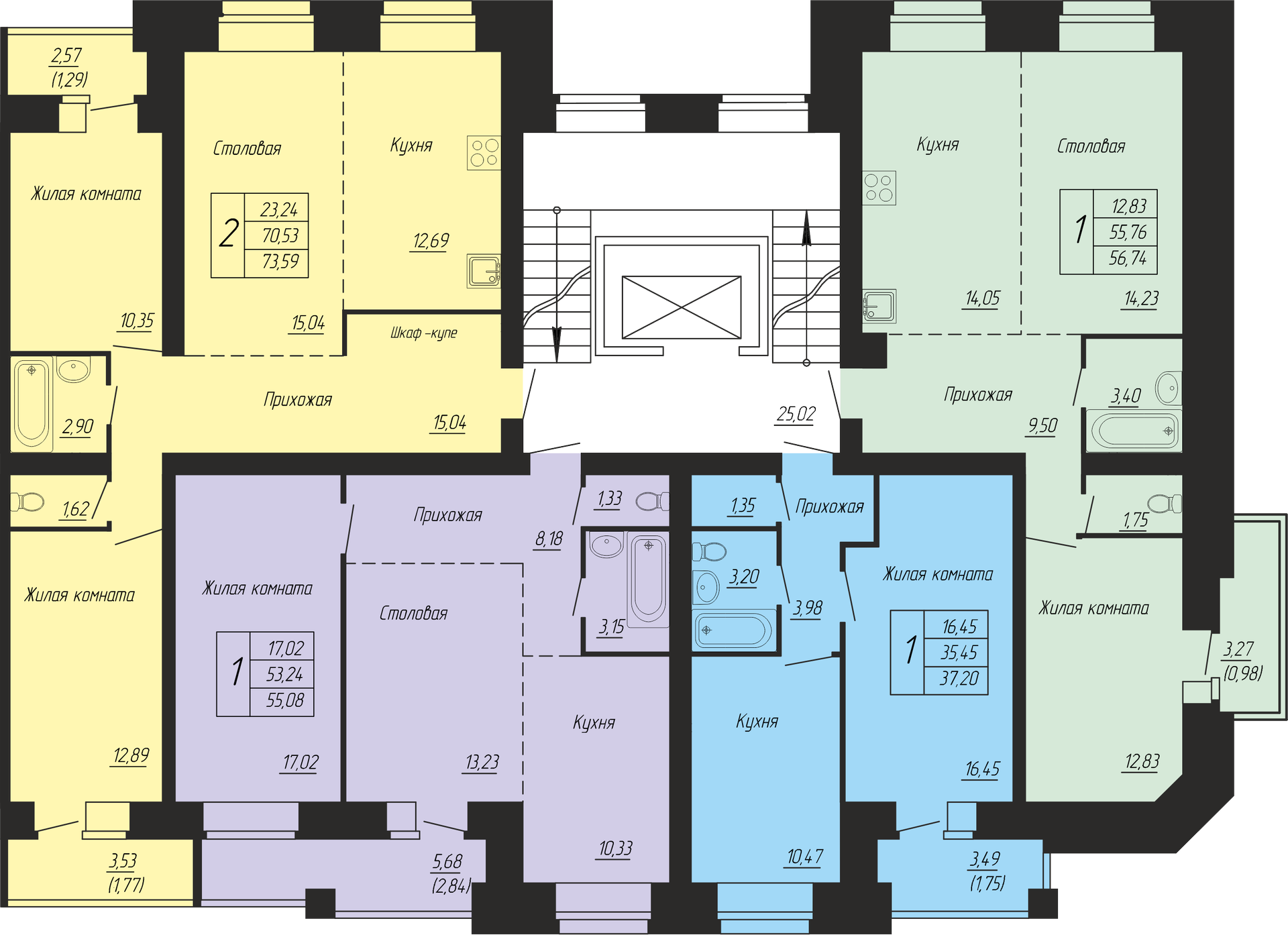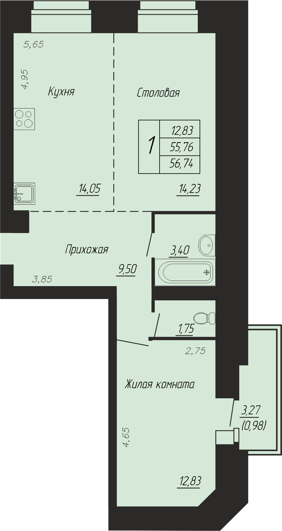 Общая площадь 57.3 м2
