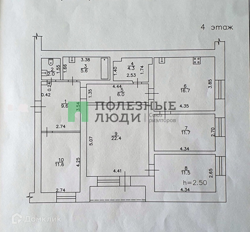 КВАДРАТУРА: изолированные комнаты правильной формы – 22,4 + 11,7 + 11,6 + 11,5 кв.м., кухня – 16,7 кв.м., прихожая – 9,6 кв.м., коридор – 6 кв.м., кладовая – 4,3 кв.м., раздельный санузел – 5,6 + 2 кв.м., балкон – 4,2 кв.м.