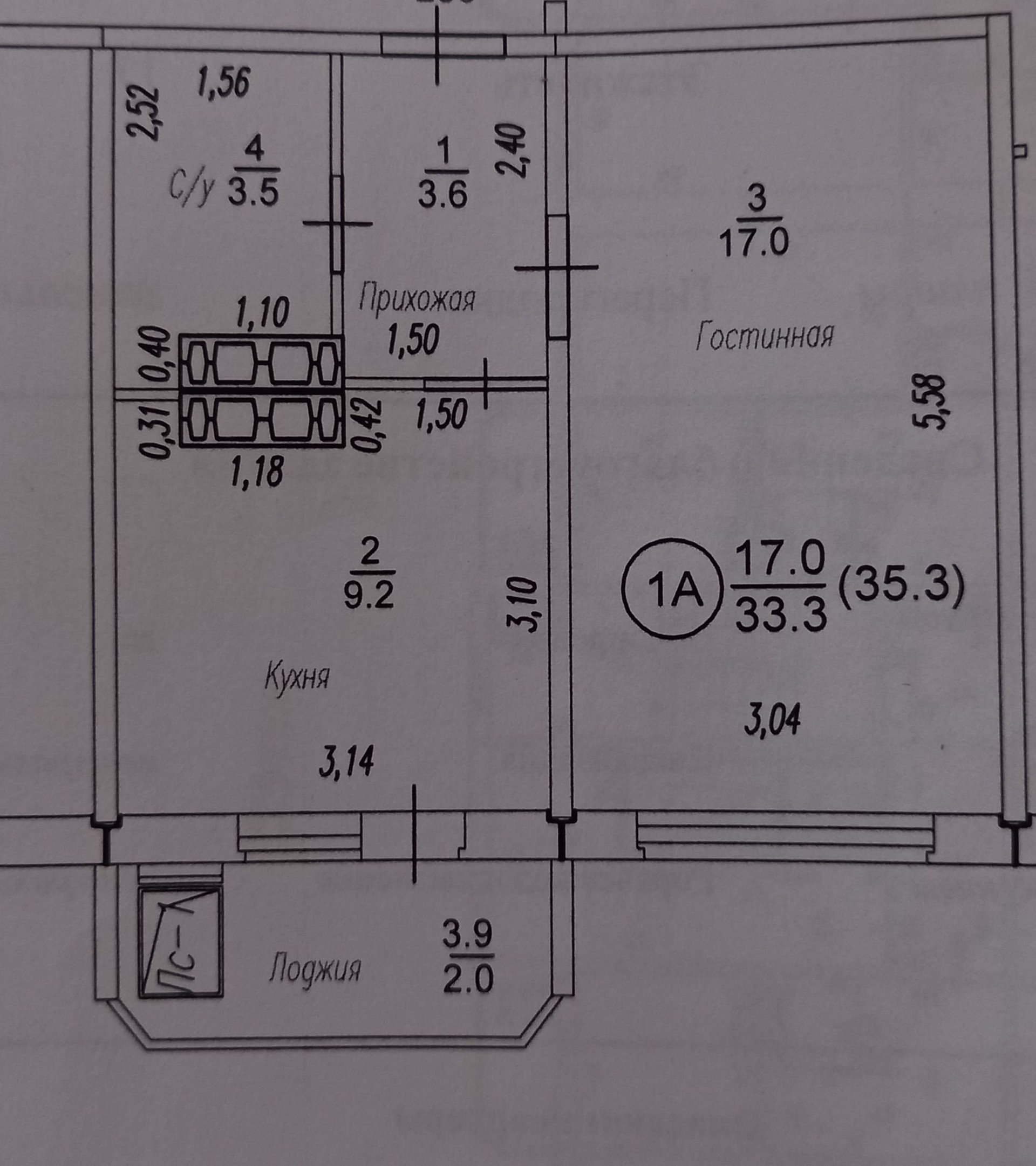 Общая площадь 35.3 м2