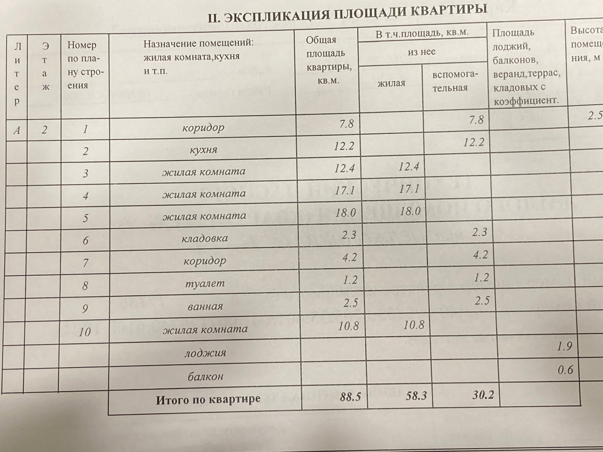 Общая площадь 88.5 м2