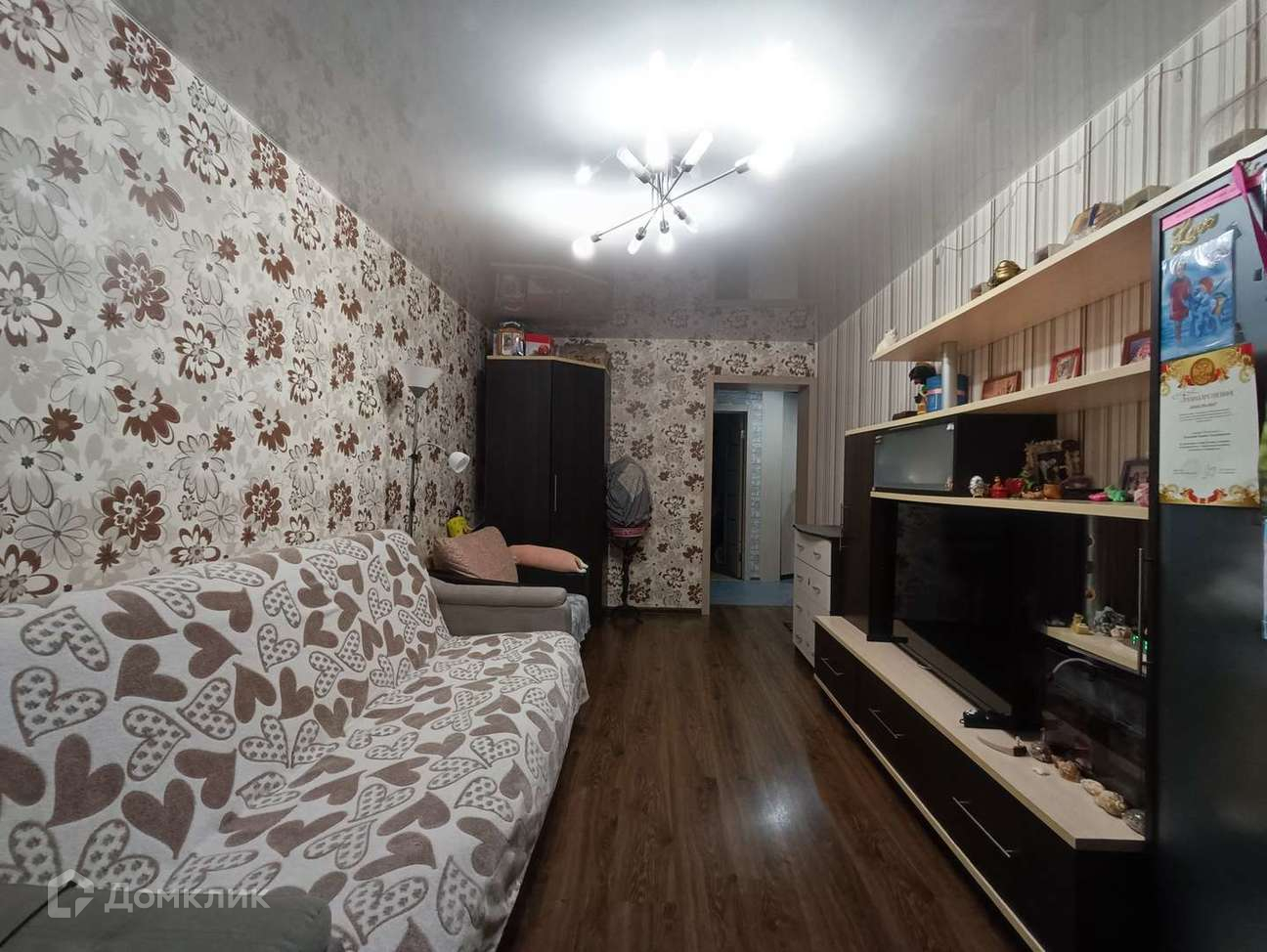 Квартира имеет отличный ремонт, с ламинатными полами и свежими обоями в светлых тонах. Натяжные потолки с эффектными светильниками придают особый шарм интерьеру. Ванная комната и туалет отделаны кафелем, создавая чистоту и уют.