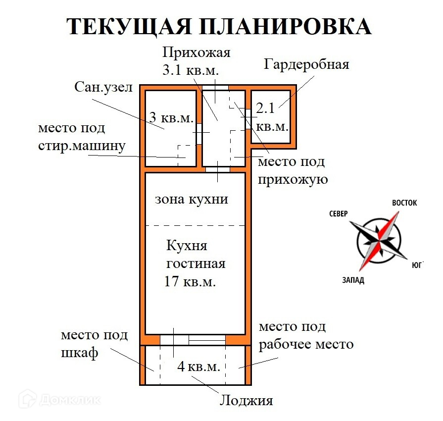 Жилая площадь 17 м2