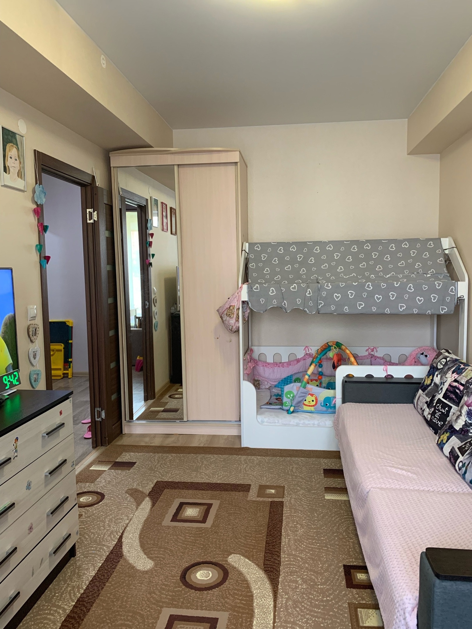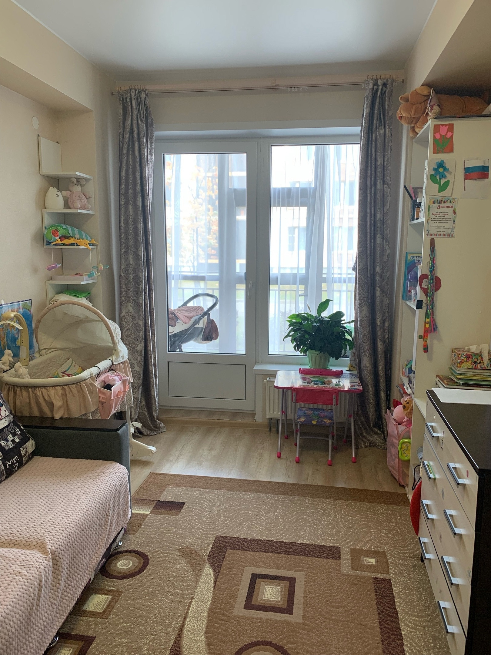 - продуктовые магазины, аптека, школа № 74, 3 детсада (один детсад в соседнем доме), остановка - все это в шаговой доступности