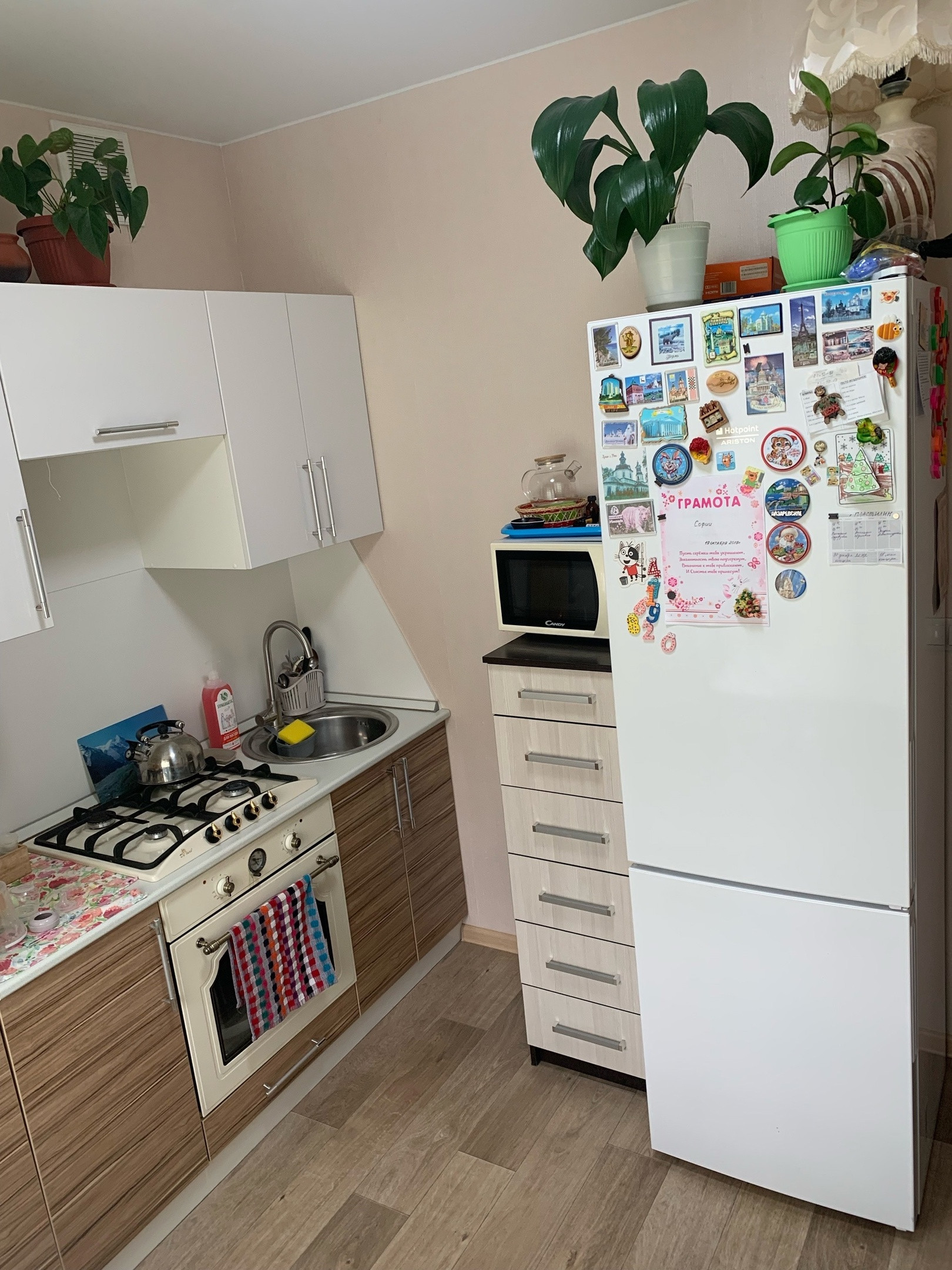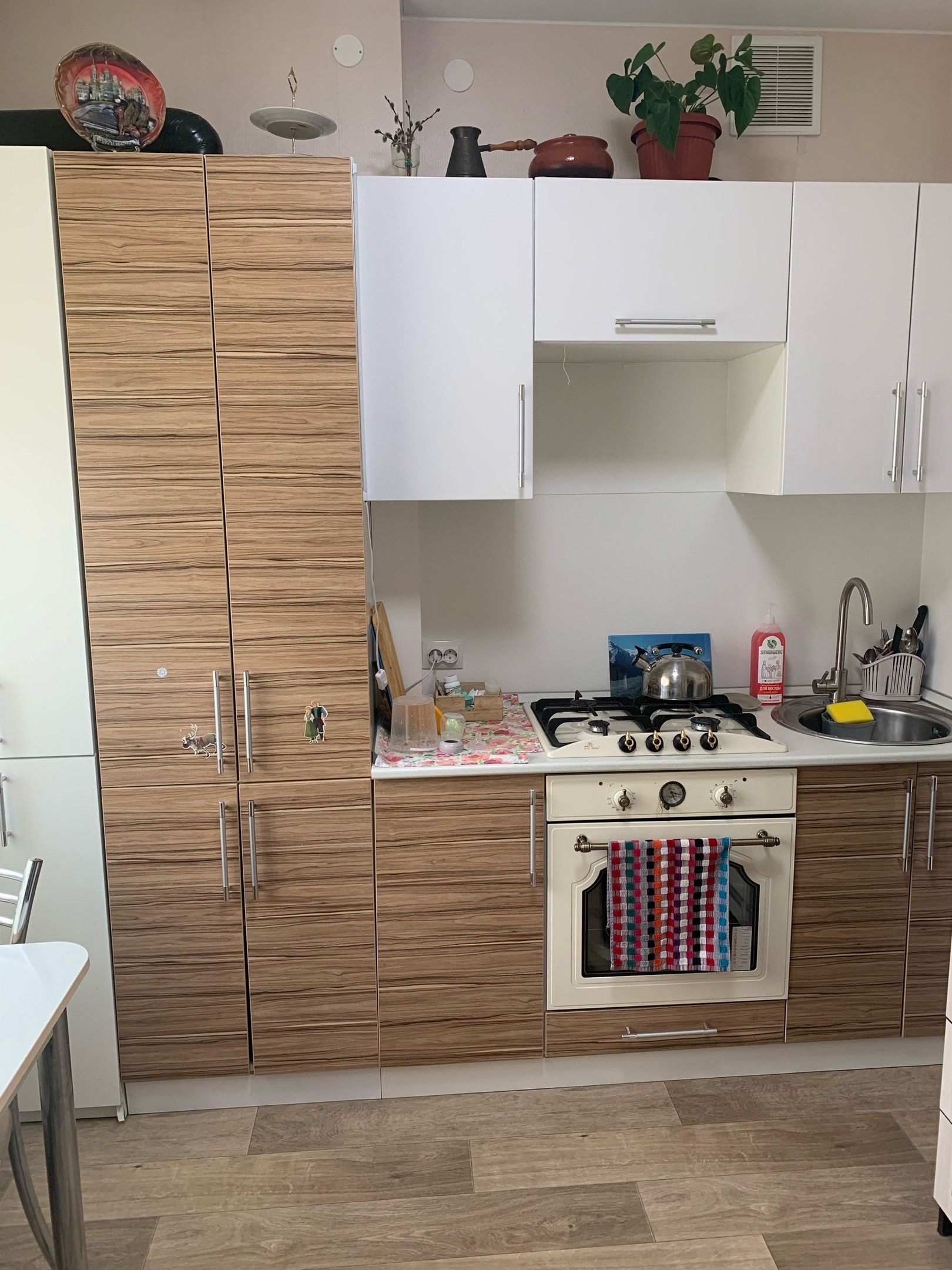 - на уютной кухне останется кухонный гарнитур, шкаф в прихожей