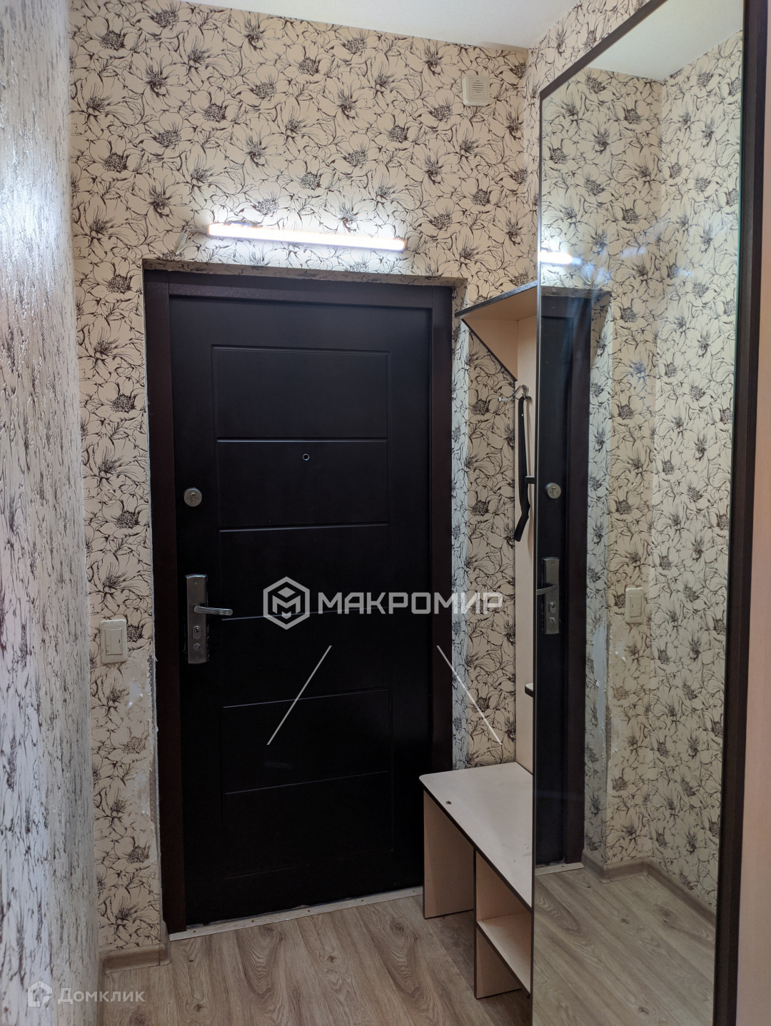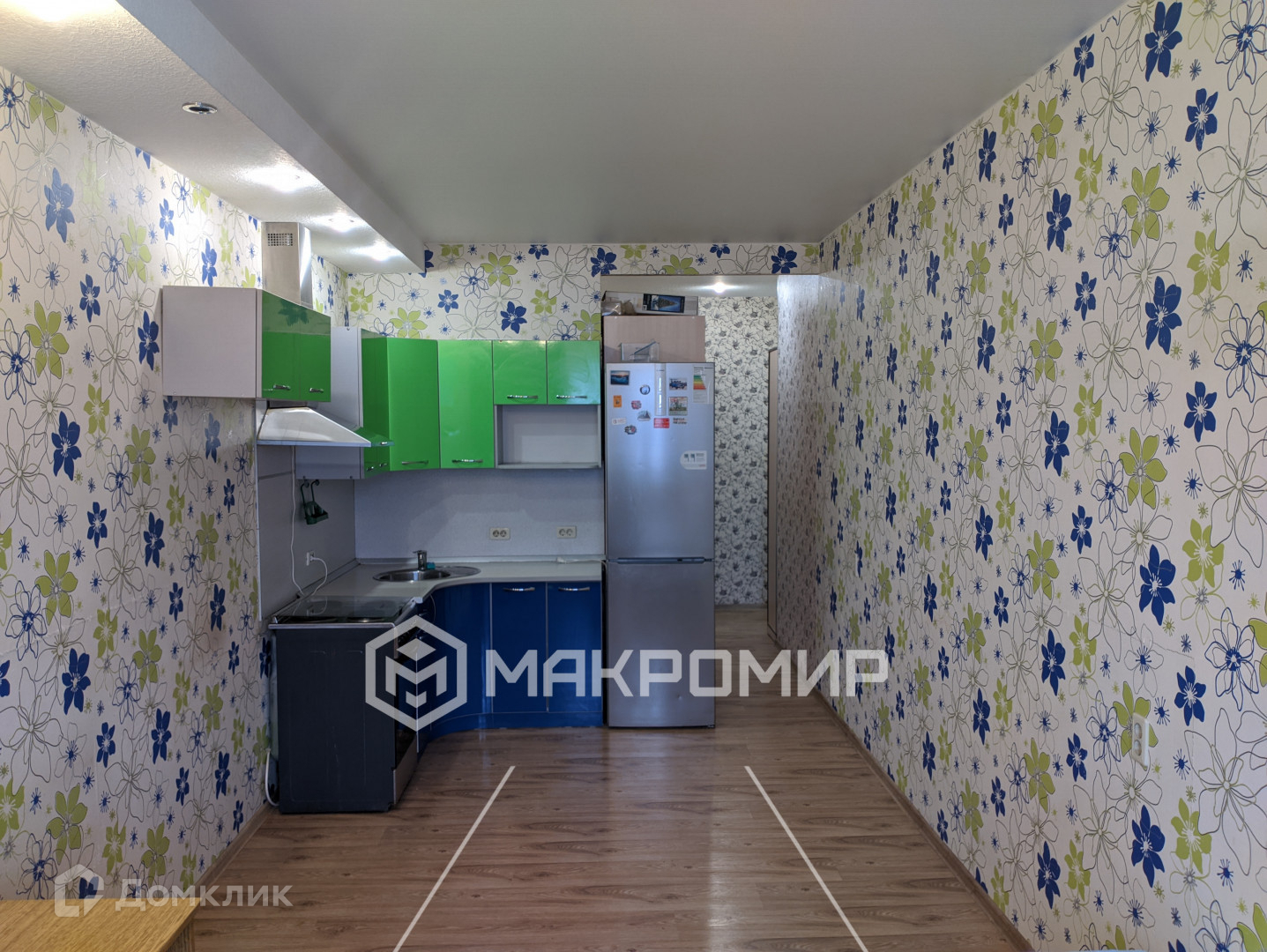 В квартире был сделан ремонт несколько лет назад: на полу – качественный ламинат, потолок натяжной, пластиковое окно, на стенах – обои. Квартира в хорошем состоянии. Единственное – можно обновить обои, что не сильно затратно по ремонту.