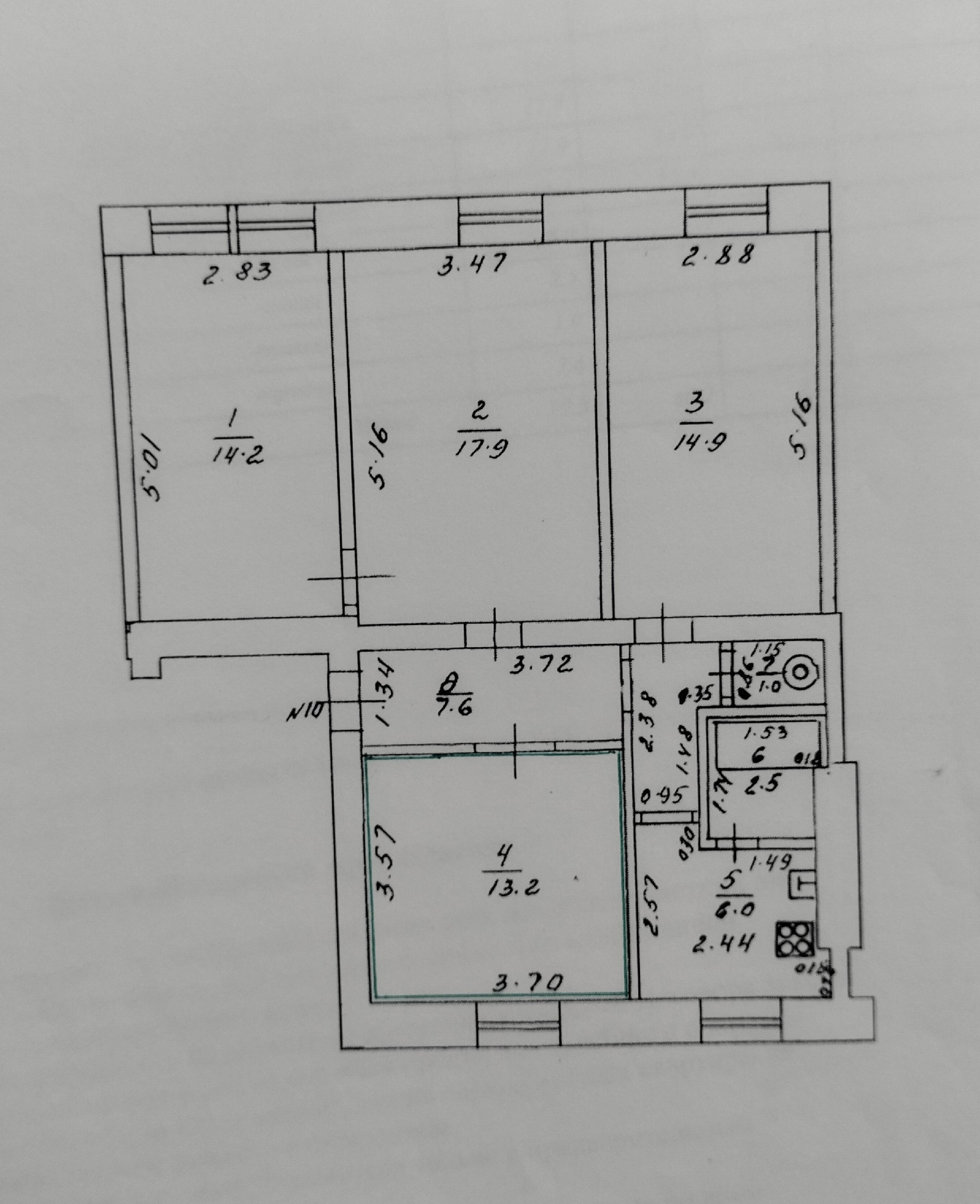 Жилая площадь 60.2 м2