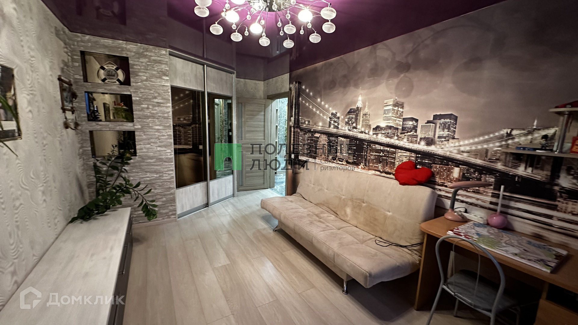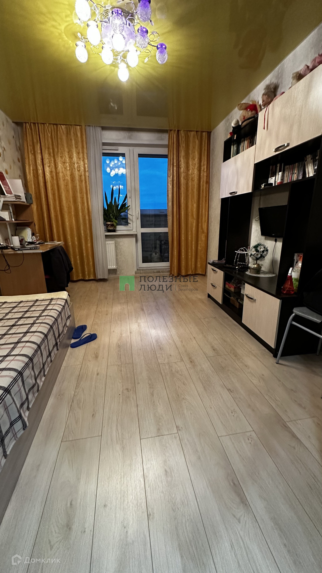 В комнатах на полу качественный ламинат, натяжные потолки, пластиковые окна. Встроенная мебель остается.